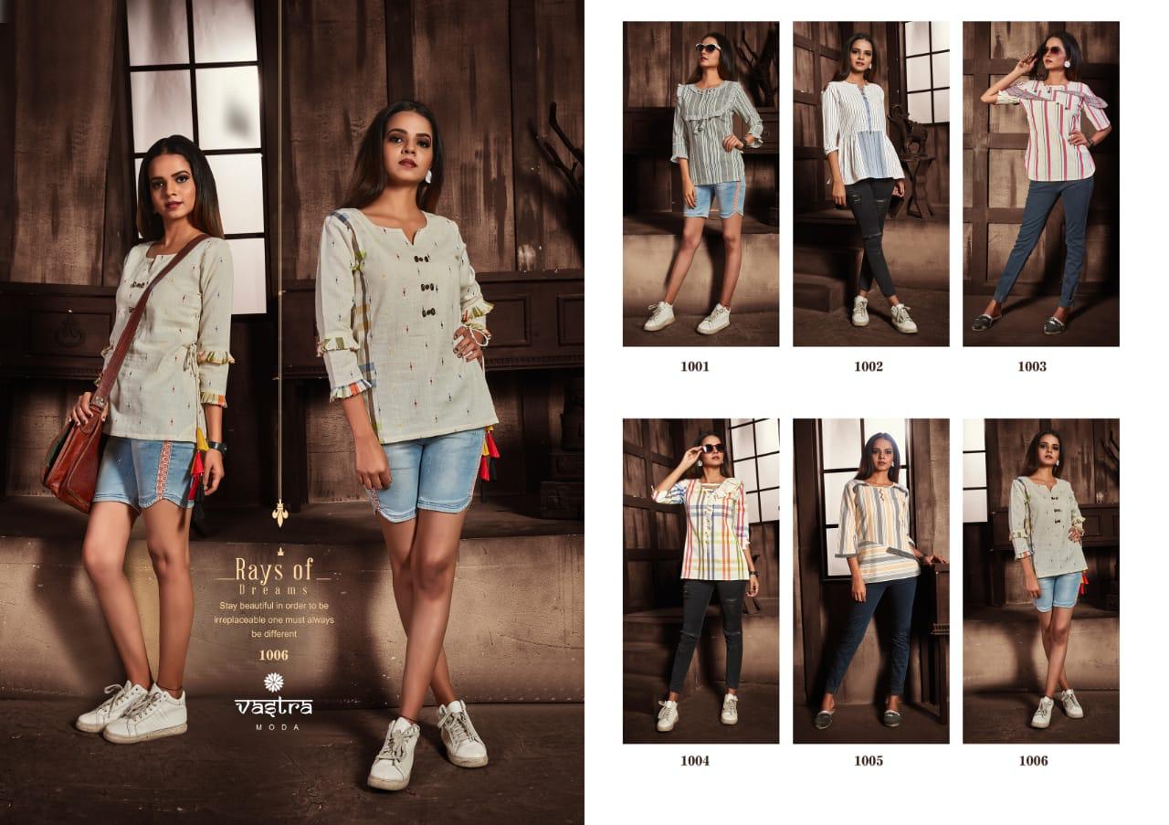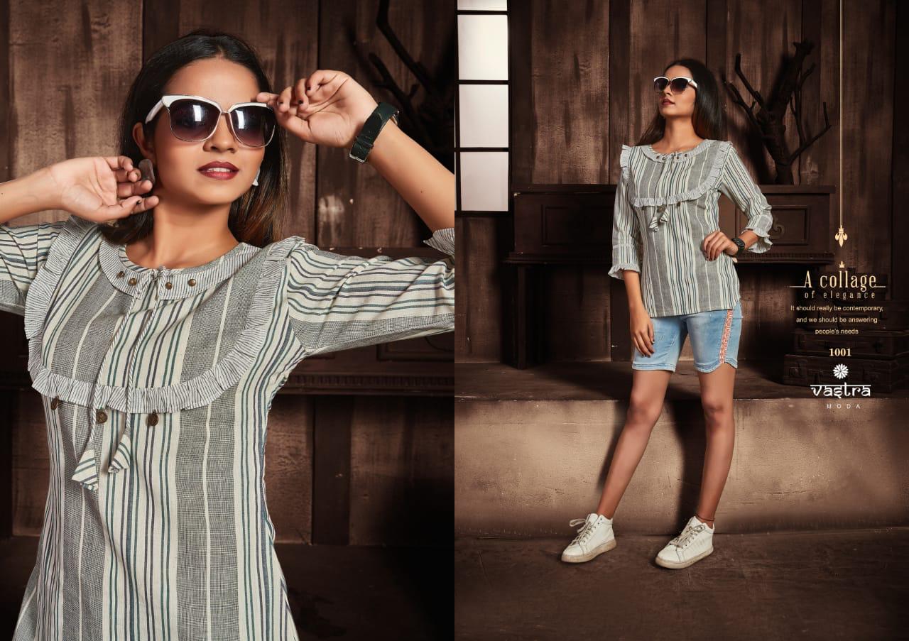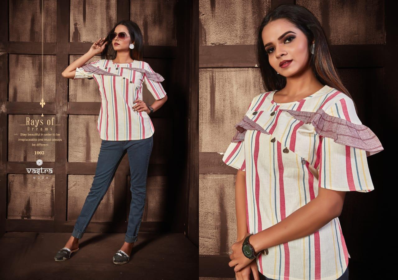 Buy Online Florenzo Vol 1 By Vastra Moda Western Top Collections Wholesale Supplier And Dealer Surat 6 Pcs of Full Catalogue at Wholesale Price. Looking for Florenzo Vol 1 By Vastra Moda Western Top Collections Wholesale Supplier And Dealer Surat Full Catalouge at Best Price? Buy Now Florenzo Vol 1 By Vastra Moda Western Top Collections Wholesale Supplier And Dealer Surat at Wholesale Rate of Rs 2370 with Total 6 Pcs from authroized dealer and supplier of BRAND'S Brand. Cost of Each piece is just only Rs 395 which is very low and affordable price to resale the product in your retail store ,This is Surat based Wholesale Supplier & Dealer of BRAND'S Brand. Click on Brand name to Know more about BRAND'S Brand's products.Call or Whatsapp on 9898838984 for booking or enquiry