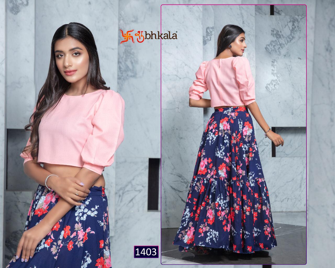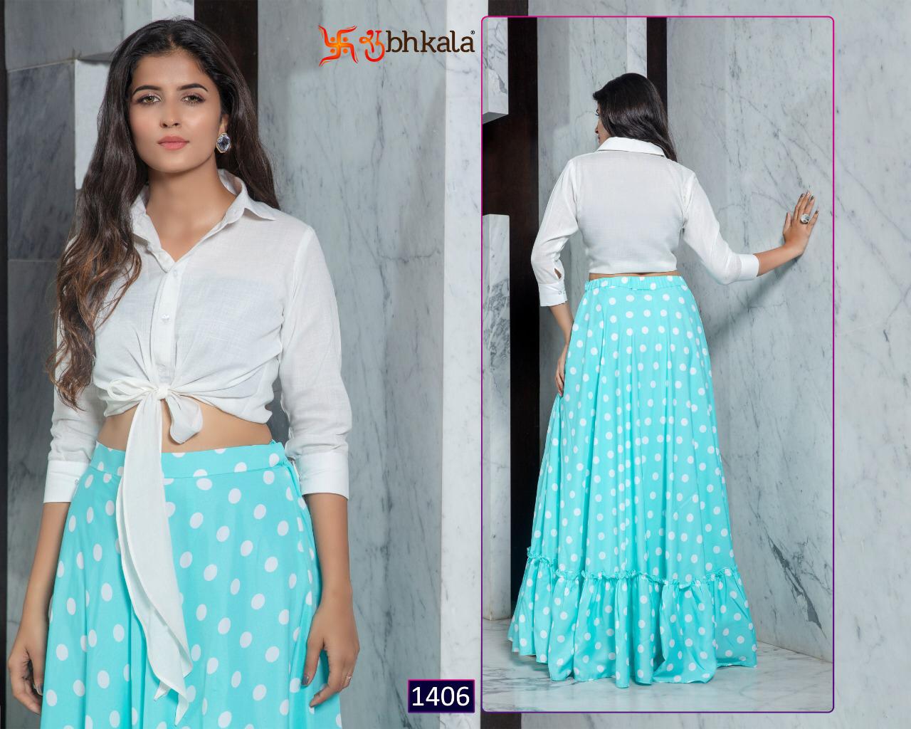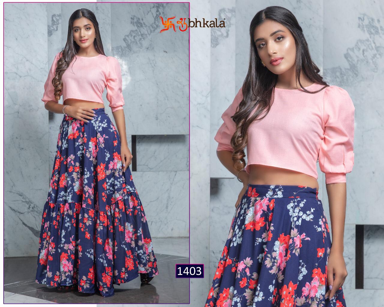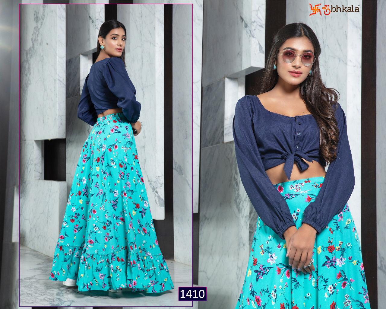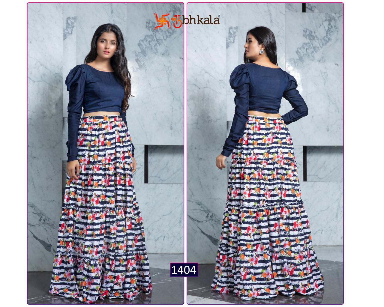 ```NEW ARRIVAL``` ? *Frill & Flare Vol. 1* ? ? New Exclusive Designer Printer Crop Top Collection ? *RATE LIST* *1401 Â? 899/-* *1402 Â? 899/-* *1403 Â? 899/-* *1404 Â? 899/-* *1405 Â? 899/-* *1406 Â? 899/-* *1407 Â? 899/-* *1408 Â? 899/-* *1409 Â? 899/-* *1410 Â? 899/-* *Type:* Stitched. *Weight:* 1 KG. *NOTE:* Skirt Comes with Elastic Bend on Waist, If can Be Stretchable From 28Â? to 36Â? in *M SIZE* & 36Â? to 44Â? in *XL SIZE*. *CAN-CAN Not Available.* Set & loose & singel ? Real Pic Available. ? ? Assured Quality ? ? Authentic Original Product ? Ready to Shipping Product. ? ?? MADE IN INDIA ?? ?? *NOTE::* ?? THIS BOOK / CATALOGS / LOGO / ARE PROTECTED UNDER COPYRIGHT ACT. AN ILLEGA/UNAUTHORIZED REPRINT, PUBLISHING, REPRODUCTION, DISTRIBUTION AND MODIFICATION OF ANY IMAGES, PHOTOGRAPHS AND PRODUCTS, TOTALLY OR IN PART, FOR ANY PURPOSE, REASON OR CAUSE IS STRICTLY PROHIBITED AND PUNISHABLE UNDER LAW. |