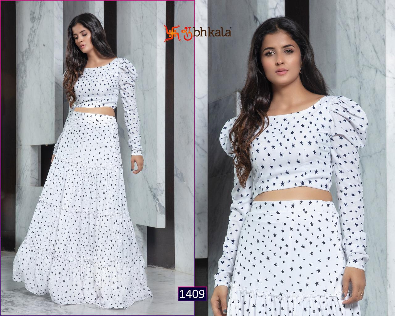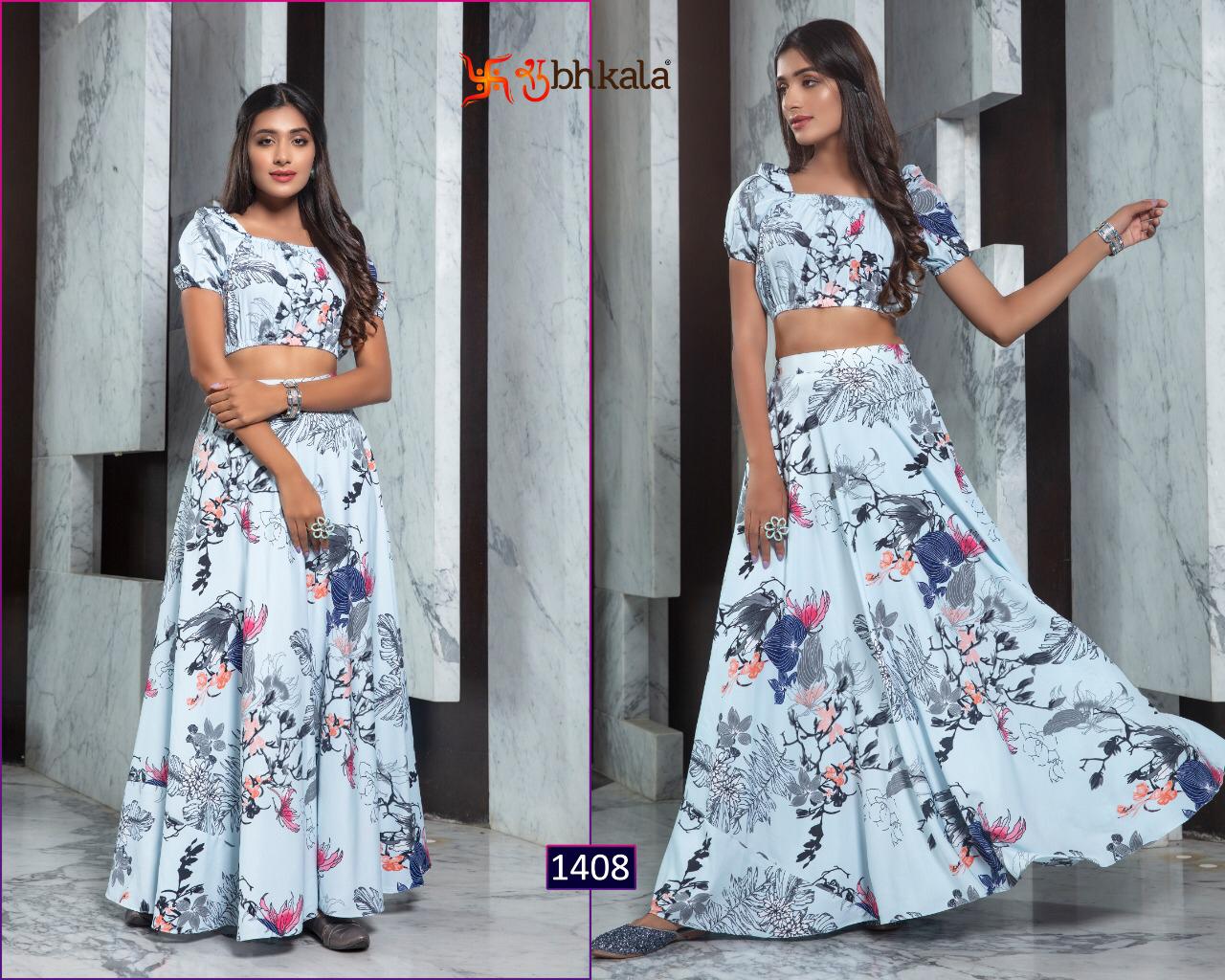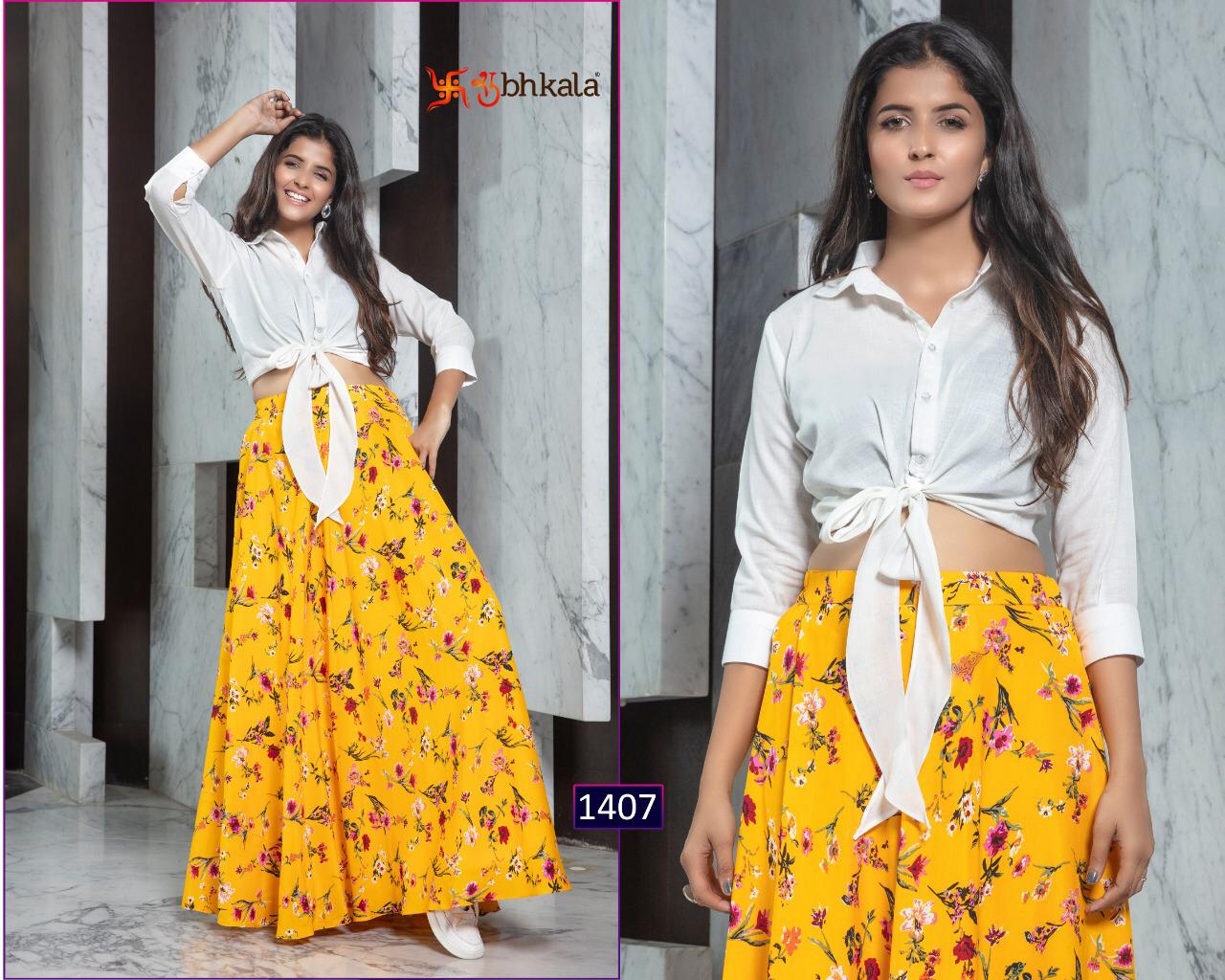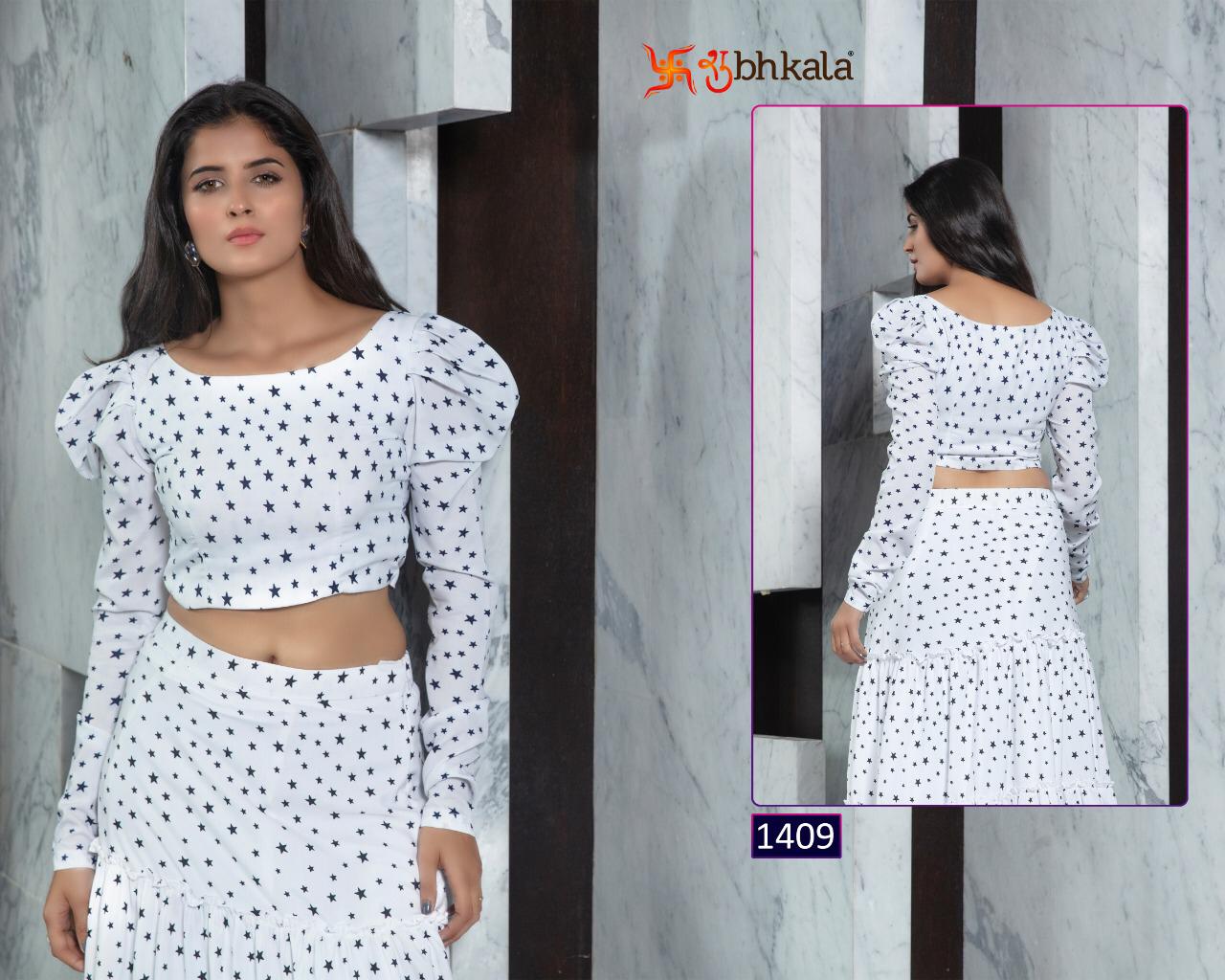 ```NEW ARRIVAL``` ? *Frill & Flare Vol. 1* ? ? New Exclusive Designer Printer Crop Top Collection ? *RATE LIST* *1401 Â? 899/-* *1402 Â? 899/-* *1403 Â? 899/-* *1404 Â? 899/-* *1405 Â? 899/-* *1406 Â? 899/-* *1407 Â? 899/-* *1408 Â? 899/-* *1409 Â? 899/-* *1410 Â? 899/-* *Type:* Stitched. *Weight:* 1 KG. *NOTE:* Skirt Comes with Elastic Bend on Waist, If can Be Stretchable From 28Â? to 36Â? in *M SIZE* & 36Â? to 44Â? in *XL SIZE*. *CAN-CAN Not Available.* Set & loose & singel ? Real Pic Available. ? ? Assured Quality ? ? Authentic Original Product ? Ready to Shipping Product. ? ?? MADE IN INDIA ?? ?? *NOTE::* ?? THIS BOOK / CATALOGS / LOGO / ARE PROTECTED UNDER COPYRIGHT ACT. AN ILLEGA/UNAUTHORIZED REPRINT, PUBLISHING, REPRODUCTION, DISTRIBUTION AND MODIFICATION OF ANY IMAGES, PHOTOGRAPHS AND PRODUCTS, TOTALLY OR IN PART, FOR ANY PURPOSE, REASON OR CAUSE IS STRICTLY PROHIBITED AND PUNISHABLE UNDER LAW. |