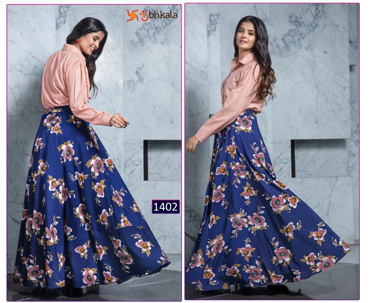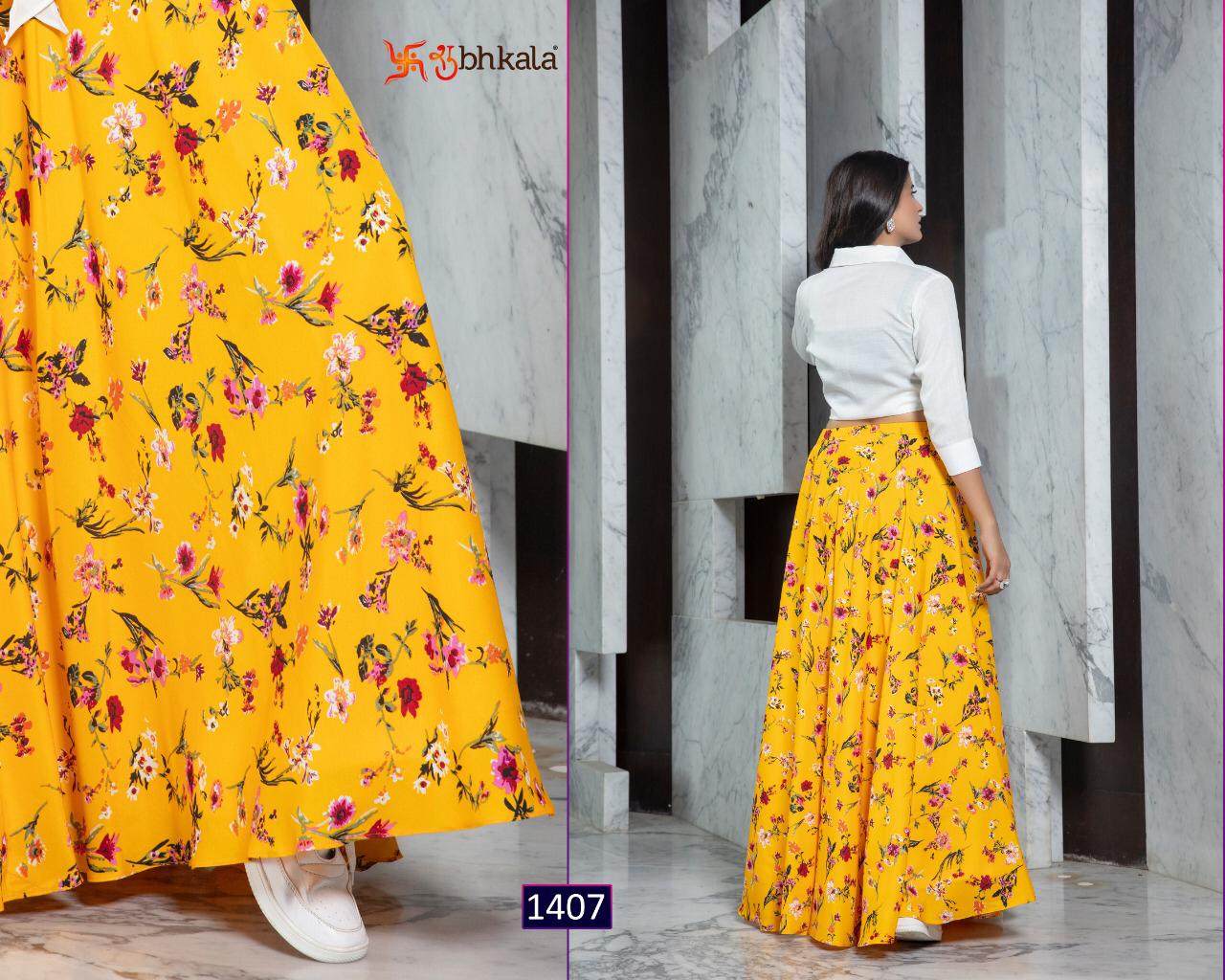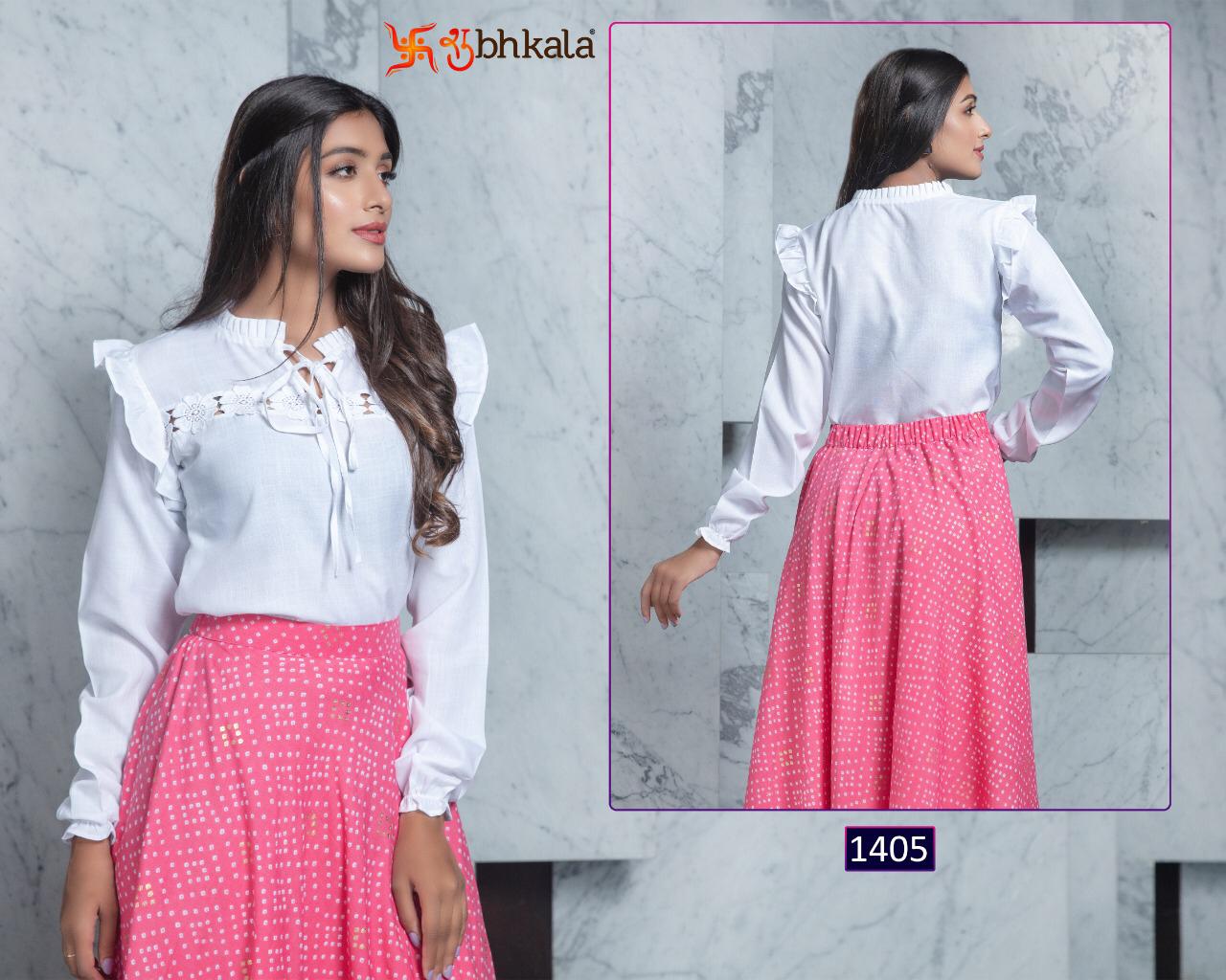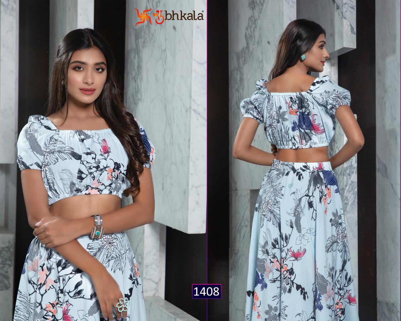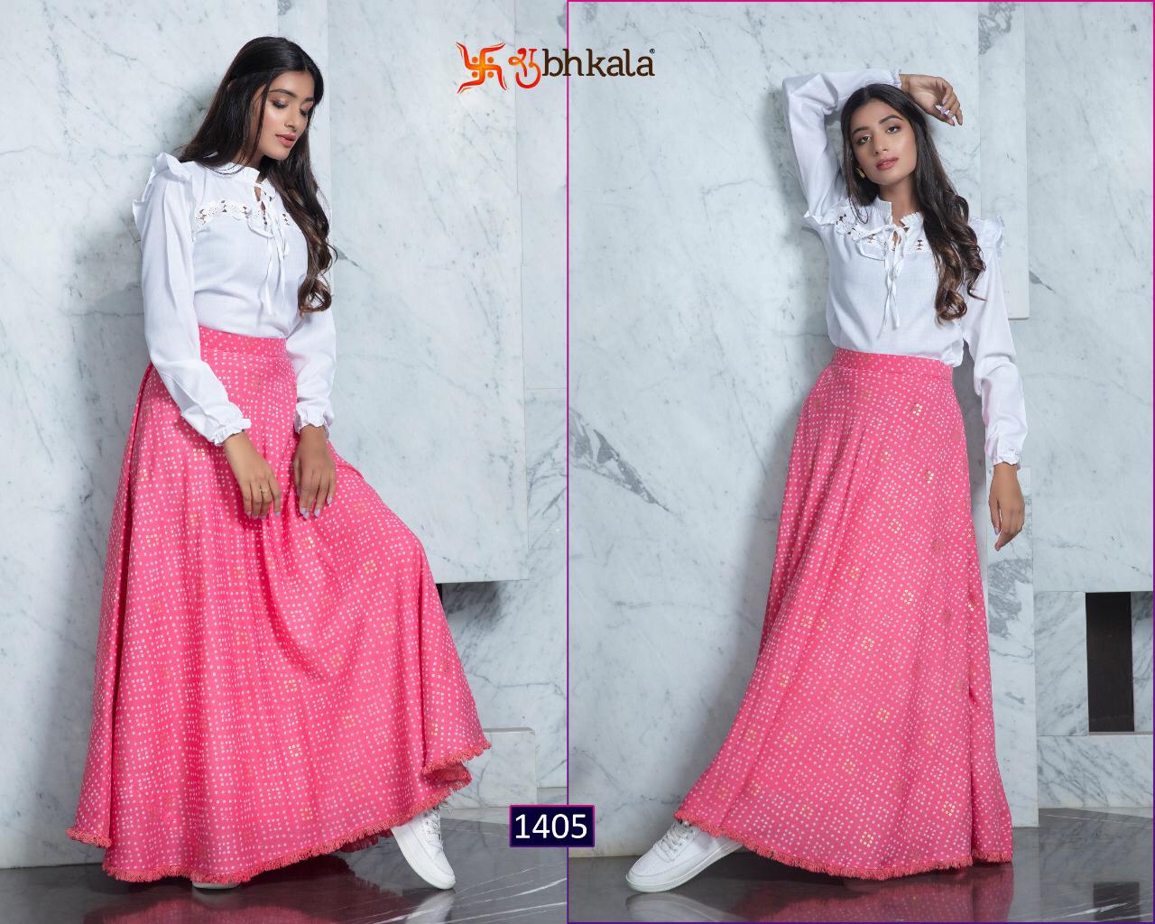 ```NEW ARRIVAL``` ? *Frill & Flare Vol. 1* ? ? New Exclusive Designer Printer Crop Top Collection ? *RATE LIST* *1401 Â? 899/-* *1402 Â? 899/-* *1403 Â? 899/-* *1404 Â? 899/-* *1405 Â? 899/-* *1406 Â? 899/-* *1407 Â? 899/-* *1408 Â? 899/-* *1409 Â? 899/-* *1410 Â? 899/-* *Type:* Stitched. *Weight:* 1 KG. *NOTE:* Skirt Comes with Elastic Bend on Waist, If can Be Stretchable From 28Â? to 36Â? in *M SIZE* & 36Â? to 44Â? in *XL SIZE*. *CAN-CAN Not Available.* Set & loose & singel ? Real Pic Available. ? ? Assured Quality ? ? Authentic Original Product ? Ready to Shipping Product. ? ?? MADE IN INDIA ?? ?? *NOTE::* ?? THIS BOOK / CATALOGS / LOGO / ARE PROTECTED UNDER COPYRIGHT ACT. AN ILLEGA/UNAUTHORIZED REPRINT, PUBLISHING, REPRODUCTION, DISTRIBUTION AND MODIFICATION OF ANY IMAGES, PHOTOGRAPHS AND PRODUCTS, TOTALLY OR IN PART, FOR ANY PURPOSE, REASON OR CAUSE IS STRICTLY PROHIBITED AND PUNISHABLE UNDER LAW. |