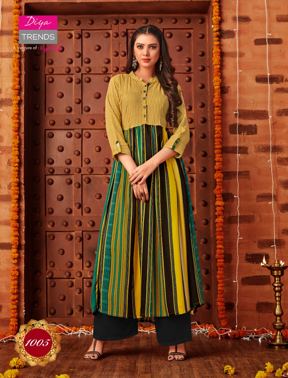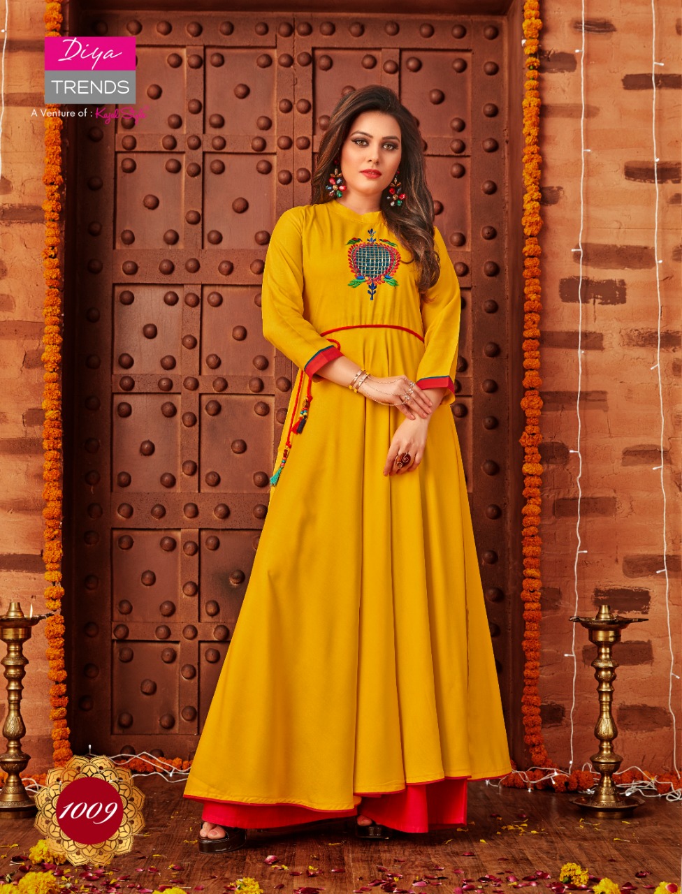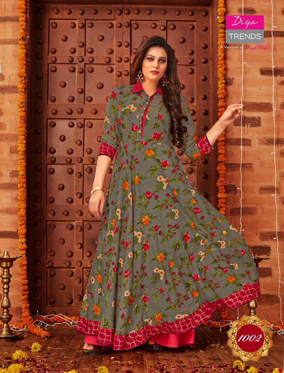 Buy Online Galleria S Vol 1 By Diya Trendz 1001 Series Fancy Reyon Printed Kurti Collection Wholesaler Surat 12 Pcs of Full Catalogue at Wholesale Price. Looking for Galleria S Vol 1 By Diya Trendz 1001 Series Fancy Reyon Printed Kurti Collection Wholesaler Surat Full Catalouge at Best Price? Buy Now Galleria S Vol 1 By Diya Trendz 1001 Series Fancy Reyon Printed Kurti Collection Wholesaler Surat at Wholesale Rate of Rs 5400 with Total 12 Pcs from authroized dealer and supplier of KAJAL STYLE Brand. Cost of Each piece is just only Rs 450 which is very low and affordable price to resale the product in your retail store ,This is Surat based Wholesale Supplier & Dealer of KAJAL STYLE Brand. Click on Brand name to Know more about KAJAL STYLE Brand's products.Call or Whatsapp on 9898838984 for booking or enquiry