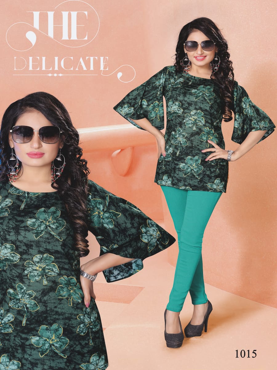 Ganesh Tops By Falak International Reyon Kurti Collection Wholesaler Surat