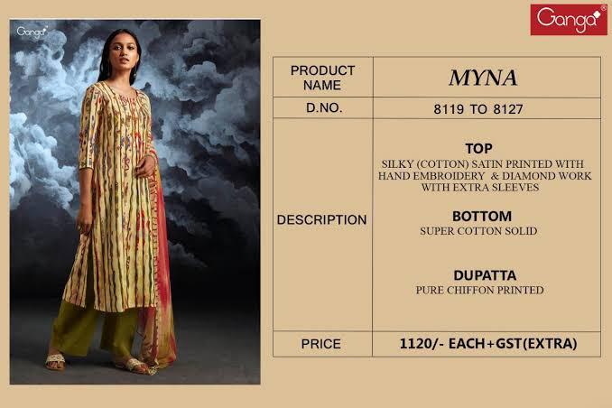 *GANGA* *READY TO DESPATCH* 1)MYNA 8119-8127 PURE COTTON 1120? 2)ZELLA 196-204 FINEST COTTON 1300? 3)HAZELY 169-177 PURE BEMBERG SILK 1870? 4) ISOLDE 160-168 PURE BEMBERG SILK 1870? 5)ENI 073-081 PURE KASURI SILK 1990? 6)DRISANA 361-367 FINEST COTTON 1500? 7)NIYAMA 124-132 PURE RUSSIAN SILK 2115? 8)AILSA 106-114 PURE KORA SILK 2080? 9)REUEL 037-045 PURE RUSSIAN SILK 2130? 10)LUCIO 8325-8330 PURE SOFTY SILK 2335? 11)GARDEN OF BIRDS 8307-8312 PURE KORA SILK 2265? SET TO SET 5%GST DELIVERY RUNNING |