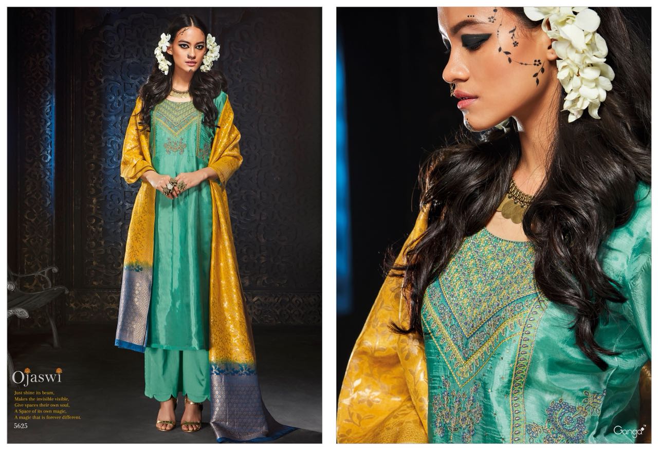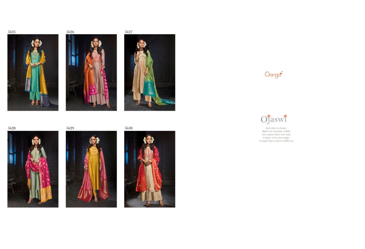 Buy Online Ganga Ojawsi 5625 Series Habutai Silk Fancy Suit Dealr Surat 6 Pcs of Full Catalogue at Wholesale Price. Looking for Ganga Ojawsi 5625 Series Habutai Silk Fancy Suit Dealr Surat Full Catalouge at Best Price? Buy Now Ganga Ojawsi 5625 Series Habutai Silk Fancy Suit Dealr Surat at Wholesale Rate of Rs 15000 with Total 6 Pcs from authroized dealer and supplier of GANGA Brand. Cost of Each piece is just only Rs 2500 which is very low and affordable price to resale the product in your retail store ,This is Surat based Wholesale Supplier & Dealer of GANGA Brand. Click on Brand name to Know more about GANGA Brand's products.Call or Whatsapp on 9898838984 for booking or enquiry