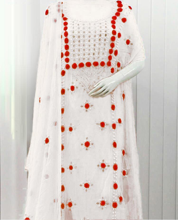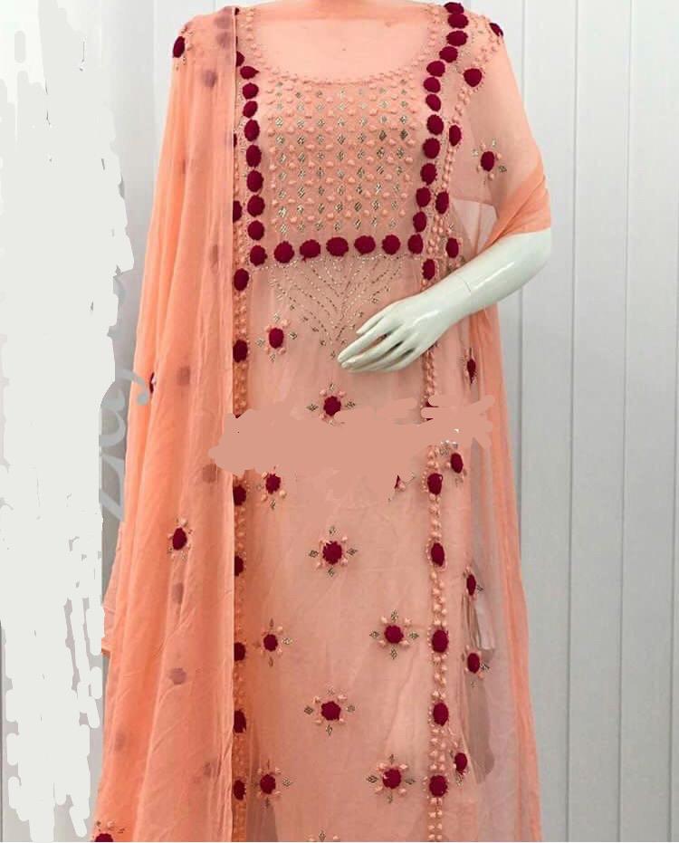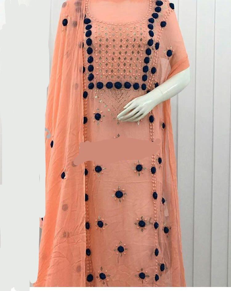 Georgette Designer With Pumpum Embroidered Suit By Nitya Nx Surat