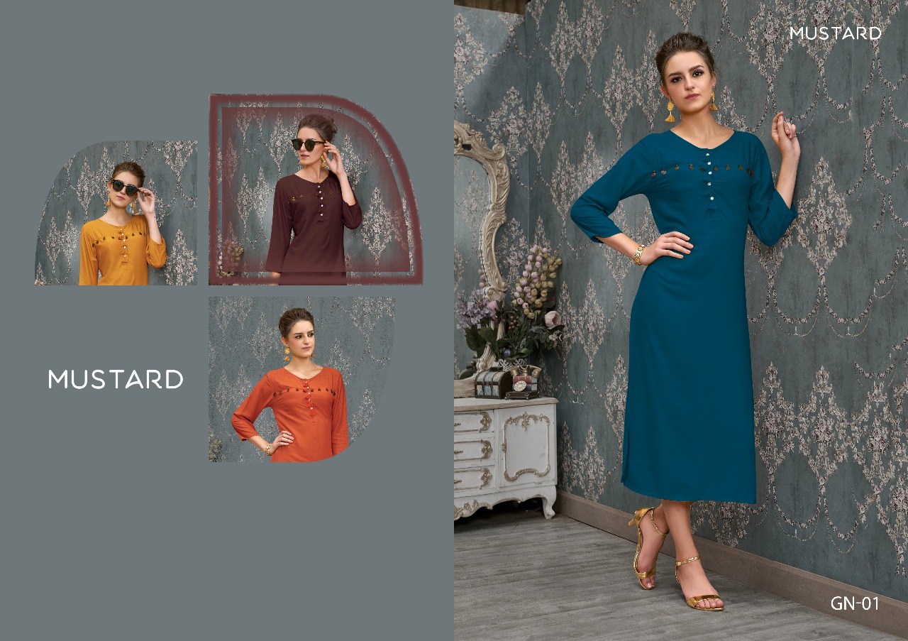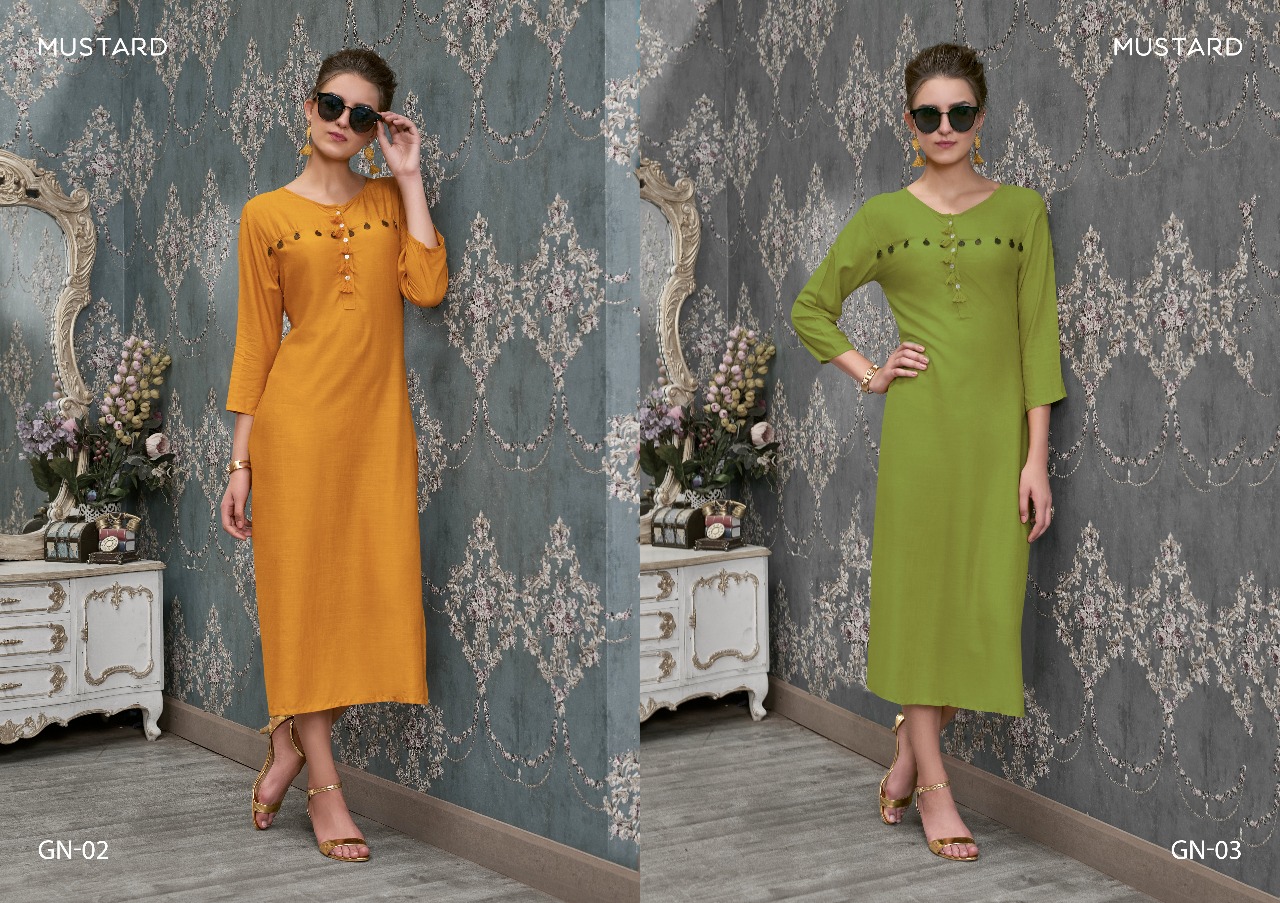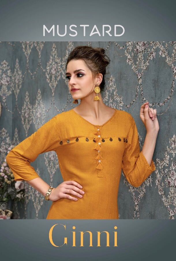 Buy Online Ginni By Mustard Slub Reyon Kurtis Catalog Wholesale Supplier And Dealer India 6 Pcs of Full Catalogue at Wholesale Price. Looking for Ginni By Mustard Slub Reyon Kurtis Catalog Wholesale Supplier And Dealer India Full Catalouge at Best Price? Buy Now Ginni By Mustard Slub Reyon Kurtis Catalog Wholesale Supplier And Dealer India at Wholesale Rate of Rs 1950 with Total 6 Pcs from authroized dealer and supplier of Brand. Cost of Each piece is just only Rs 325 which is very low and affordable price to resale the product in your retail store ,This is Surat based Wholesale Supplier & Dealer of Brand. Click on Brand name to Know more about Brand's products.Call or Whatsapp on 9898838984 for booking or enquiry