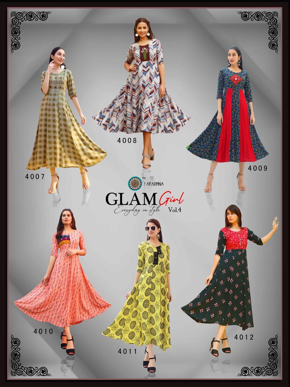 Buy Online Glam Girl Vol 4 By Aradhna Manufacturer Traders Surat Gujrat 12 Pcs of Full Catalogue at Wholesale Price. Looking for Glam Girl Vol 4 By Aradhna Manufacturer Traders Surat Gujrat Full Catalouge at Best Price? Buy Now Glam Girl Vol 4 By Aradhna Manufacturer Traders Surat Gujrat at Wholesale Rate of Rs 5220 with Total 12 Pcs from authroized dealer and supplier of Brand. Cost of Each piece is just only Rs 435 which is very low and affordable price to resale the product in your retail store ,This is Surat based Wholesale Supplier & Dealer of Brand. Click on Brand name to Know more about Brand's products.Call or Whatsapp on 9898838984 for booking or enquiry