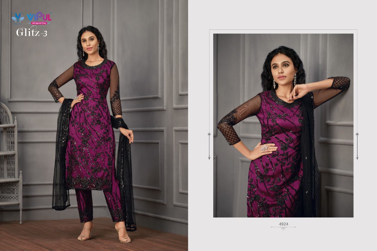 Glitz Vol 3 By Vipul Designer Hand Work Suit Single Available Wholesaler Surat