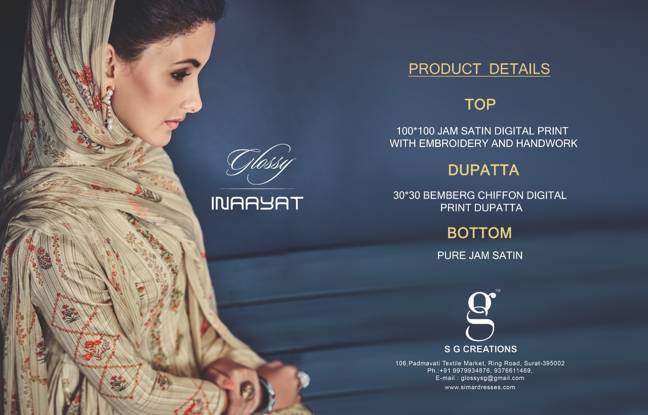 Glossy Inayat By S G Creation Jam Satin Digital Printed Desinger Suits Wholesale Supplier And Dealer India