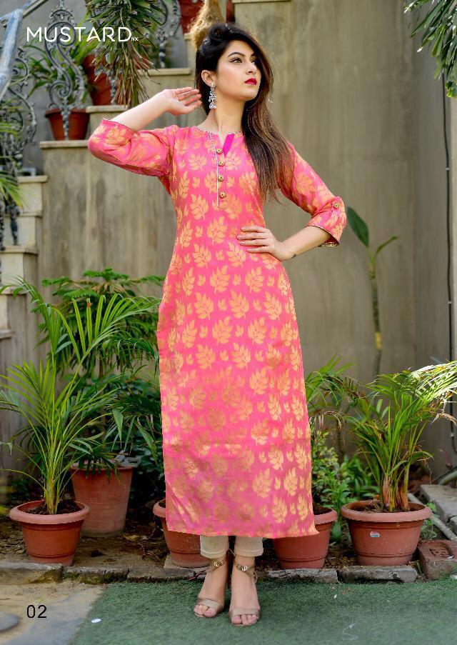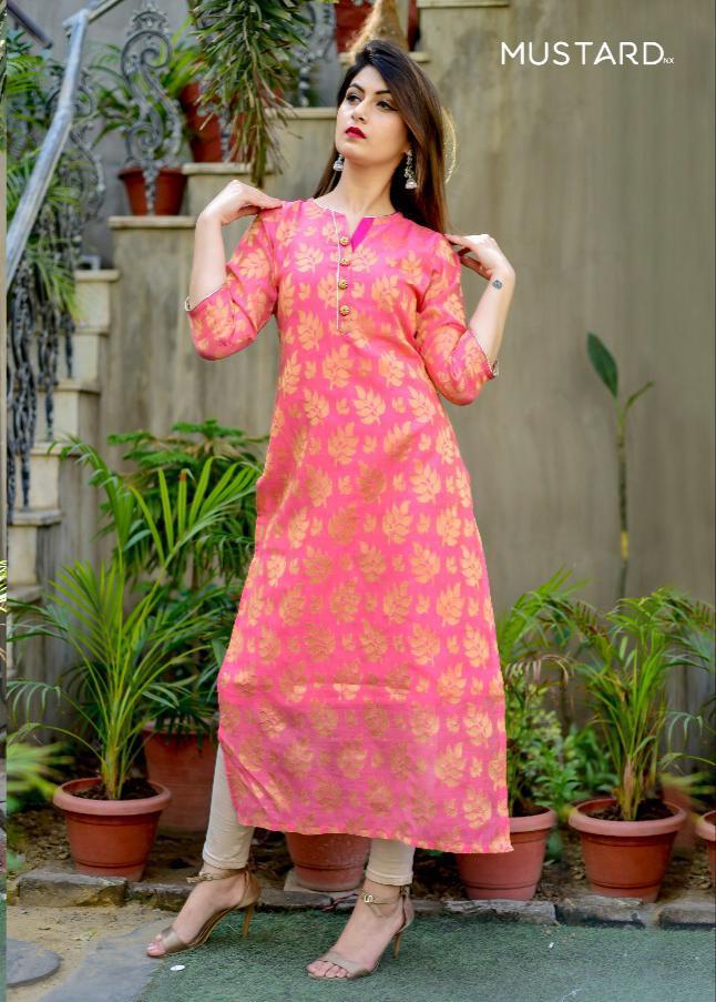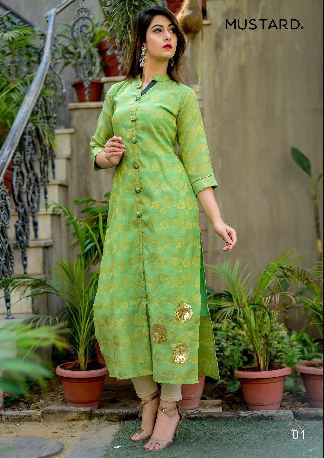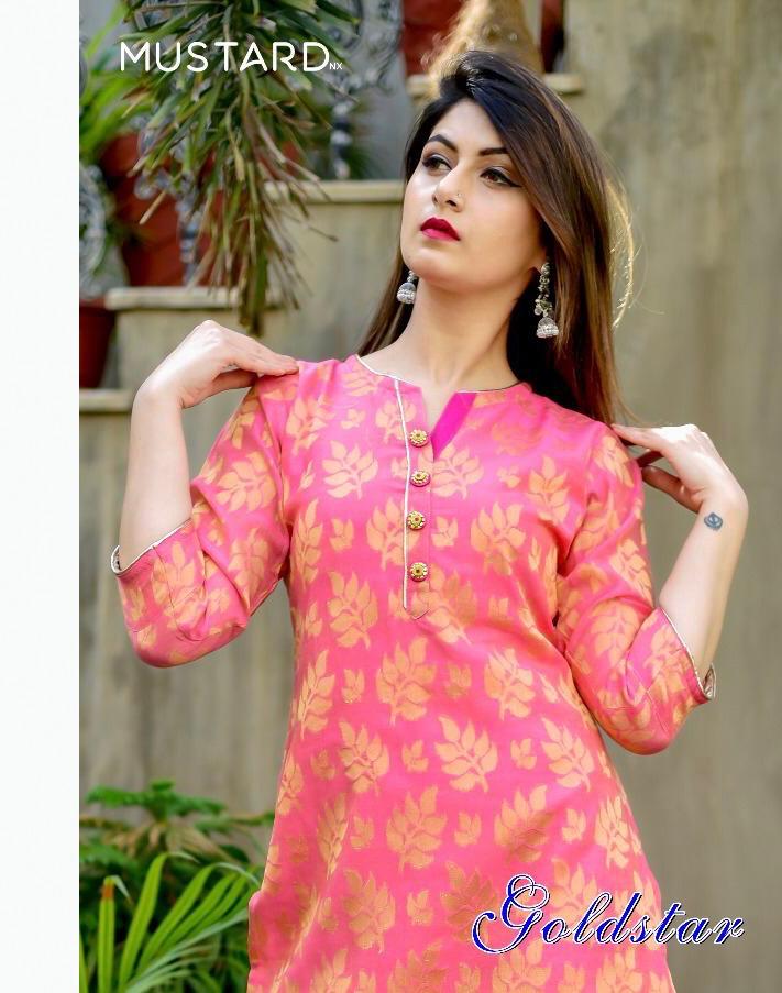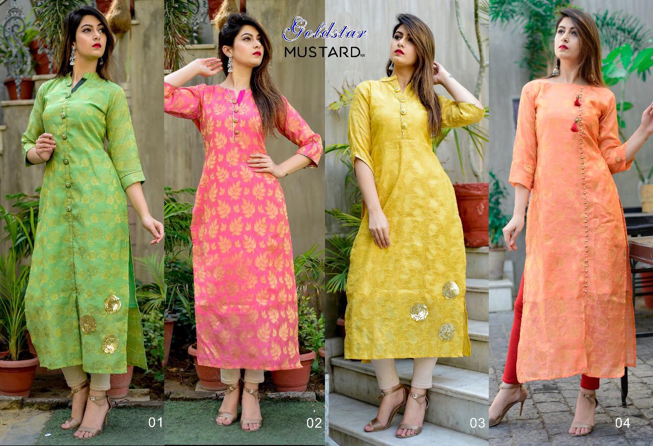 Goldstar By Mustrard 01 Series Fancy Banarsi Silk Kurti Collection Wholesaler Surat