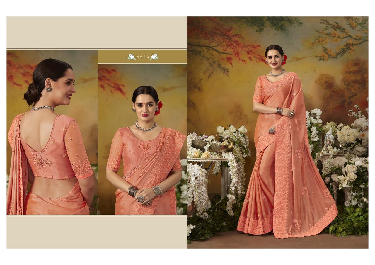 Brand - Kessi . Type - Saree. Catlog Name - Goras silk. Series -4631 to 4638. Rate -1599 pe rocks . GST 5 Percent Extra. Single Extra 100 Set & loose . Delivery 2 days |