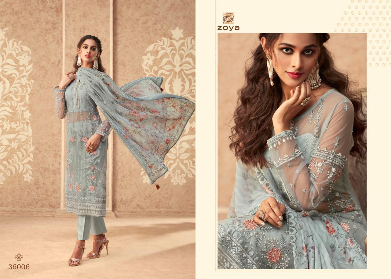 Buy Online Grace By Zoya Series 36001 To 36907 Designer Party Wear Suits Wholesale Supplier Gujarat 7 Pcs of Full Catalogue at Wholesale Price. Looking for Grace By Zoya Series 36001 To 36907 Designer Party Wear Suits Wholesale Supplier Gujarat Full Catalouge at Best Price? Buy Now Grace By Zoya Series 36001 To 36907 Designer Party Wear Suits Wholesale Supplier Gujarat at Wholesale Rate of Rs 13104 with Total 7 Pcs from authroized dealer and supplier of Zoya Brand. Cost of Each piece is just only Rs 1872 which is very low and affordable price to resale the product in your retail store ,This is Surat based Wholesale Supplier & Dealer of Zoya Brand. Click on Brand name to Know more about Zoya Brand's products.Call or Whatsapp on 9898838984 for booking or enquiry
