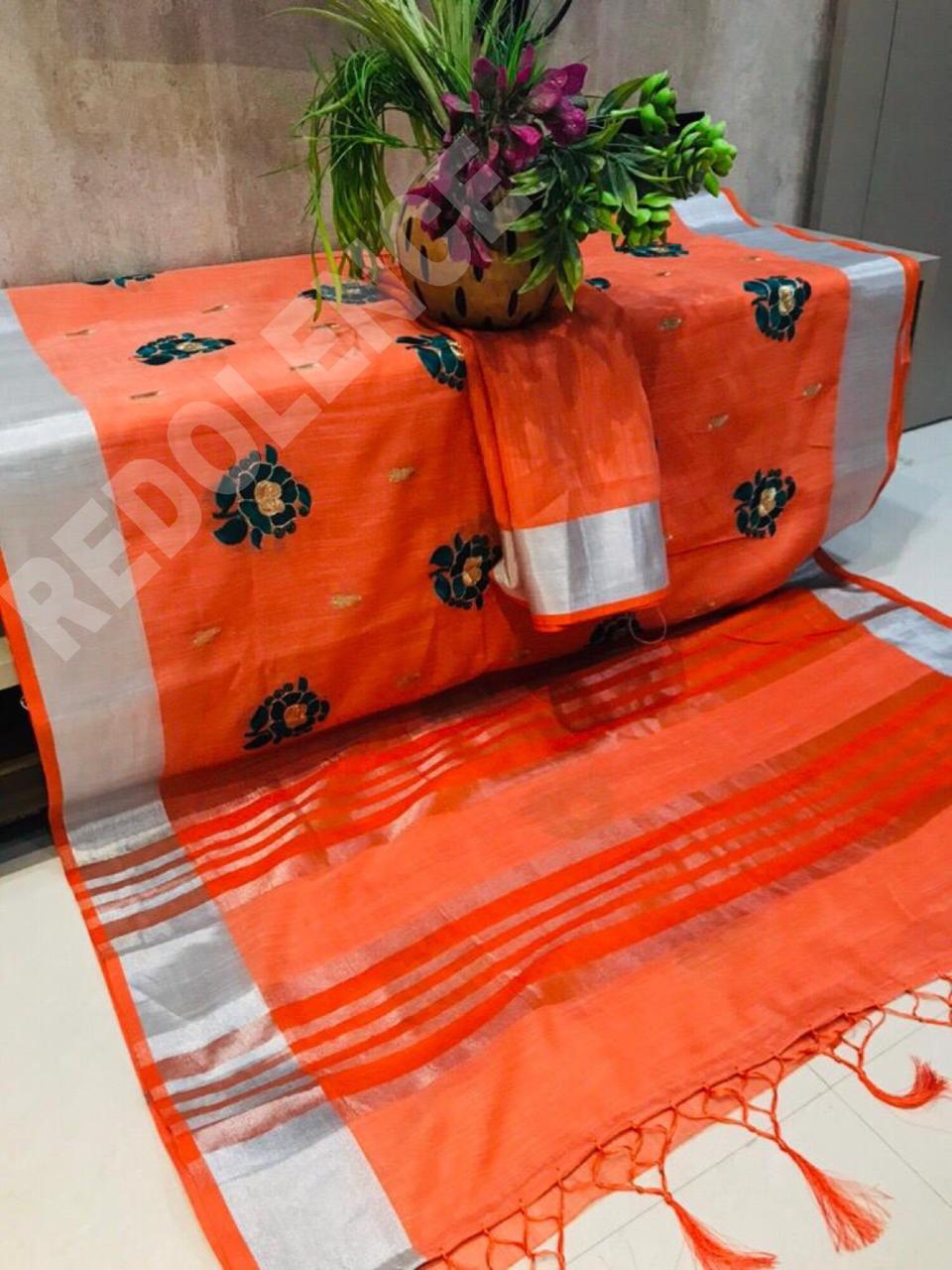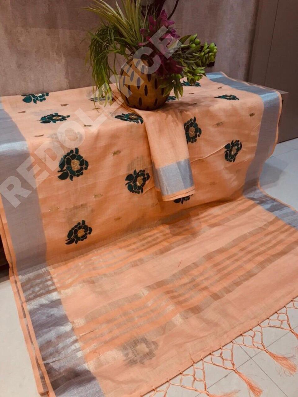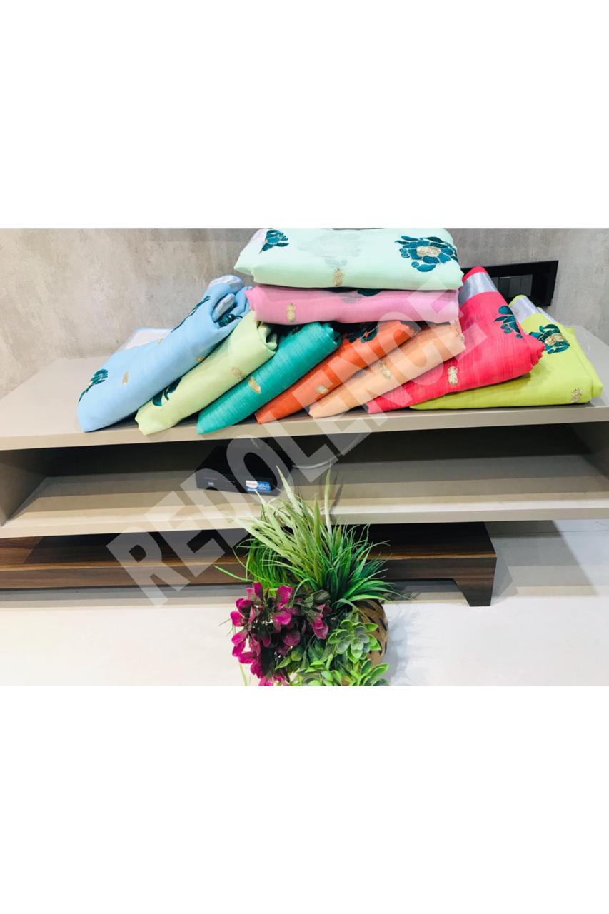 Buy Online Green Rose By Redolence Fancy Pure Linen Silk Embroidery Saree Wholesaler Surat 9 Pcs of Full Catalogue at Wholesale Price. Looking for Green Rose By Redolence Fancy Pure Linen Silk Embroidery Saree Wholesaler Surat Full Catalouge at Best Price? Buy Now Green Rose By Redolence Fancy Pure Linen Silk Embroidery Saree Wholesaler Surat at Wholesale Rate of Rs 8991 with Total 9 Pcs from authroized dealer and supplier of BRAND'S Brand. Cost of Each piece is just only Rs 999 which is very low and affordable price to resale the product in your retail store ,This is Surat based Wholesale Supplier & Dealer of BRAND'S Brand. Click on Brand name to Know more about BRAND'S Brand's products.Call or Whatsapp on 9898838984 for booking or enquiry