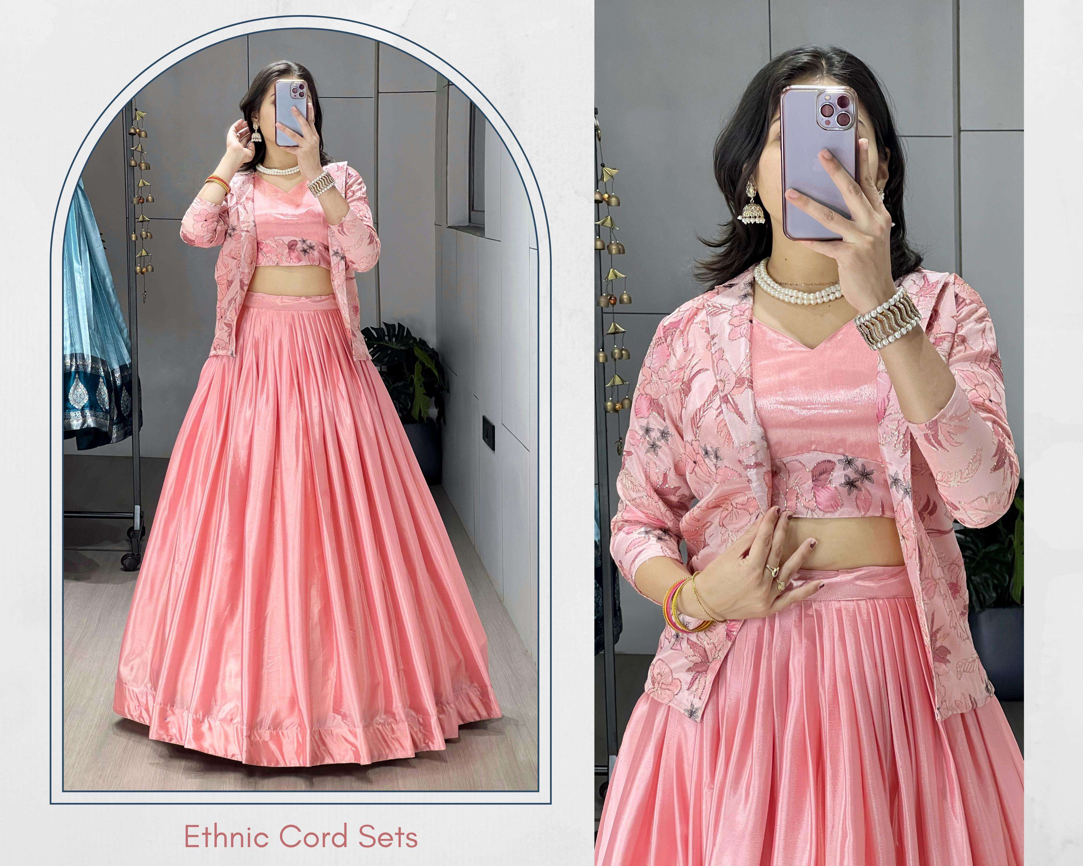 👜Drape the Most Beautiful Chinon Positioned Prints Koti With Embroidery Paired up with Flairy Lehenga to Present most Gorgeous you, Explore our Unique Designer Wardrobe for Wedding,Party or Events.✨