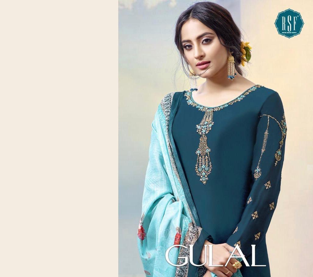 Buy Online Gulal By Rfs Satin Georgette Embroidered Designer Party Wear Suits Wholesale Supplier Gujarat 6 Pcs of Full Catalogue at Wholesale Price. Looking for Gulal By Rfs Satin Georgette Embroidered Designer Party Wear Suits Wholesale Supplier Gujarat Full Catalouge at Best Price? Buy Now Gulal By Rfs Satin Georgette Embroidered Designer Party Wear Suits Wholesale Supplier Gujarat at Wholesale Rate of Rs 6570 with Total 6 Pcs from authroized dealer and supplier of RSF Brand. Cost of Each piece is just only Rs 1095 which is very low and affordable price to resale the product in your retail store ,This is Surat based Wholesale Supplier & Dealer of RSF Brand. Click on Brand name to Know more about RSF Brand's products.Call or Whatsapp on 9898838984 for booking or enquiry