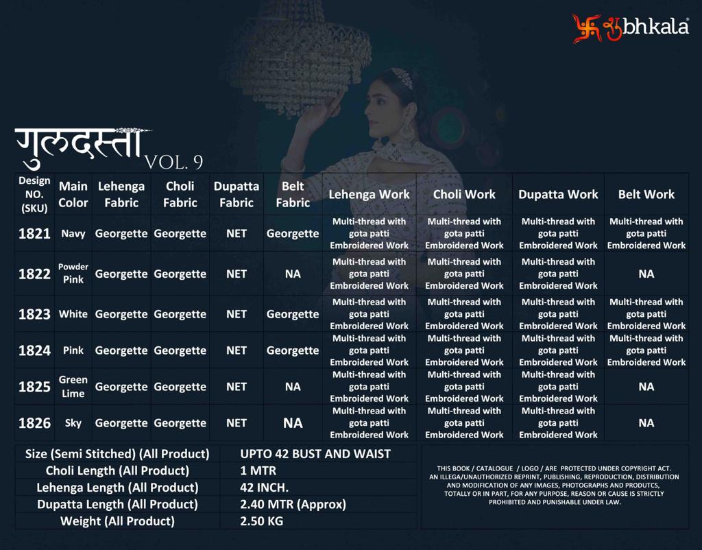 Buy Online Guldasta Vol 9 By Shubhkala Exclusive Bridal Lehenga Choli Collection Single Avilable Wholesaler Supplier Surat 6 Pcs of Full Catalogue at Wholesale Price. Looking for Guldasta Vol 9 By Shubhkala Exclusive Bridal Lehenga Choli Collection Single Avilable Wholesaler Supplier Surat Full Catalouge at Best Price? Buy Now Guldasta Vol 9 By Shubhkala Exclusive Bridal Lehenga Choli Collection Single Avilable Wholesaler Supplier Surat at Wholesale Rate of Rs 25194 with Total 6 Pcs from authroized dealer and supplier of Brand. Cost of Each piece is just only Rs 4199 which is very low and affordable price to resale the product in your retail store ,This is Surat based Wholesale Supplier & Dealer of Brand. Click on Brand name to Know more about Brand's products.Call or Whatsapp on 9898838984 for booking or enquiry
