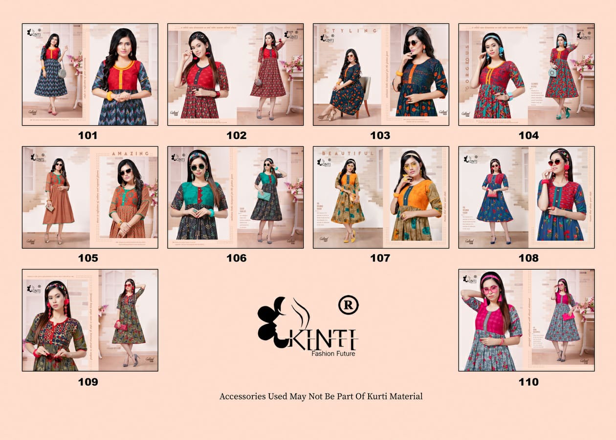 *Gulkand* By *KINTI* ® Fabric. : *Reyon 14kg* Style. : *Mix N Match* *Stiching Patterns* *Fleet* Lenght. : *45(approx)* Sizes : *S M L XL 2XL 3XL 4XL 5XL* Designs : *10* *RATE :- 369 + 5% GST* |