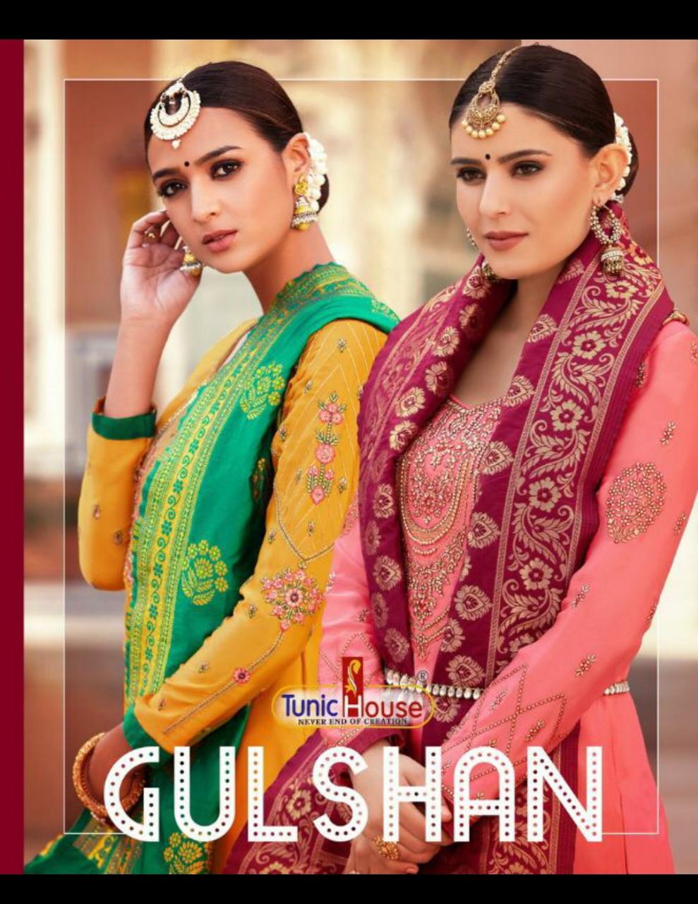Buy Online Gulshan By Tunic House Designer Party Wear Suits Wholesale Supplier Gujarat 8 Pcs of Full Catalogue at Wholesale Price. Looking for Gulshan By Tunic House Designer Party Wear Suits Wholesale Supplier Gujarat Full Catalouge at Best Price? Buy Now Gulshan By Tunic House Designer Party Wear Suits Wholesale Supplier Gujarat at Wholesale Rate of Rs 10360 with Total 8 Pcs from authroized dealer and supplier of TUNIC HOUSE Brand. Cost of Each piece is just only Rs 1295 which is very low and affordable price to resale the product in your retail store ,This is Surat based Wholesale Supplier & Dealer of TUNIC HOUSE Brand. Click on Brand name to Know more about TUNIC HOUSE Brand's products.Call or Whatsapp on 9898838984 for booking or enquiry