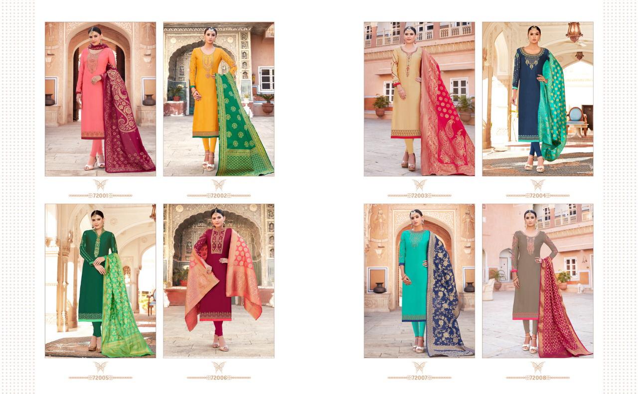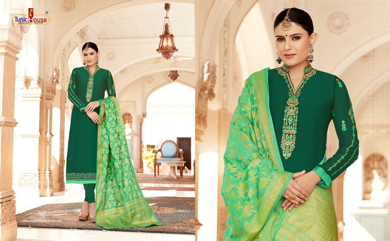 _...TUNIC HOUSE..._ Â?presentsÂ? *Â?GULSHAN Â?* Exclusive collection a season to enjoy marriage function.so we are hear to change your wardrobe with elegance colour to enjoy the function. ?Top: Heavy satin georgette Fancy Embroidery with hand work (2.50 mtr apx) ?Dupatta: Banarasi Gerard . (2.25mtrs apx) ?Bottom & inner:santon (4 met apx ?Pcs: 8 ? Rate :1295 Set To Set . Delivery 3-4 days (Applicable GST extra). Team tunic house ? |