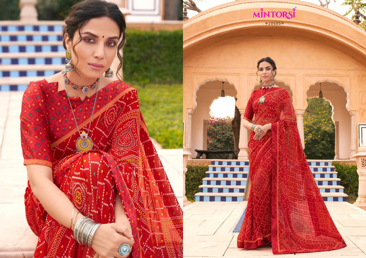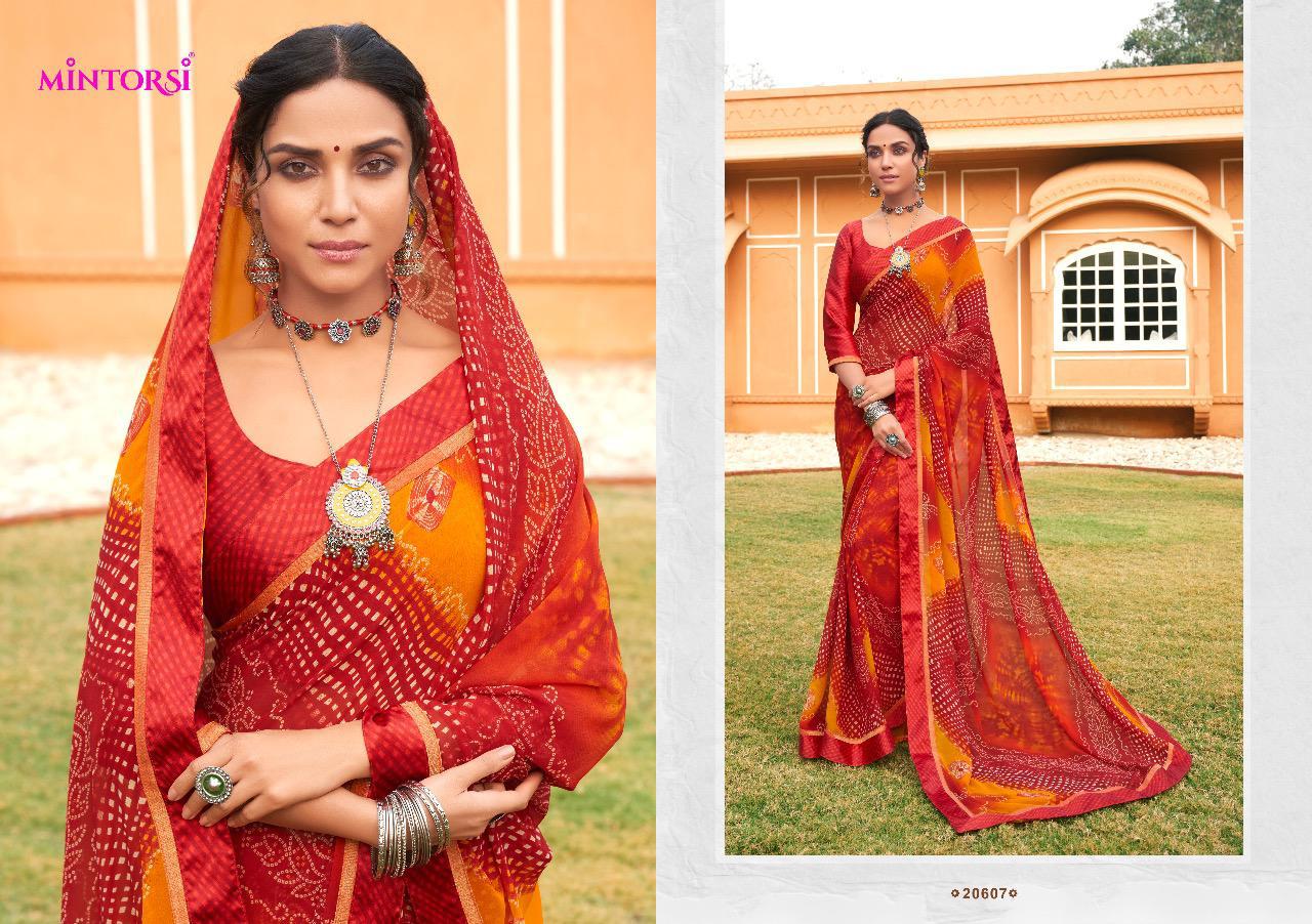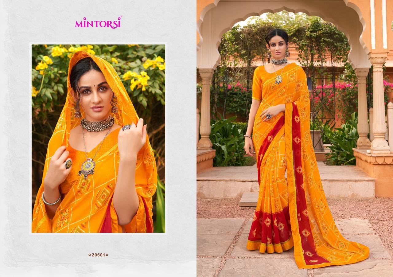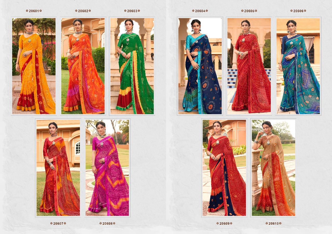 MINTORSI Designer Bandhej Saree Cataloge name - Gun Gun Series -20601 to 20610 Fabric - Weightless With Satin Lace And Satin Blouse ? Total Design - 10 * set & loose & singel * Per Pcs rate-695+gst Single extra 100 Delivery from today |