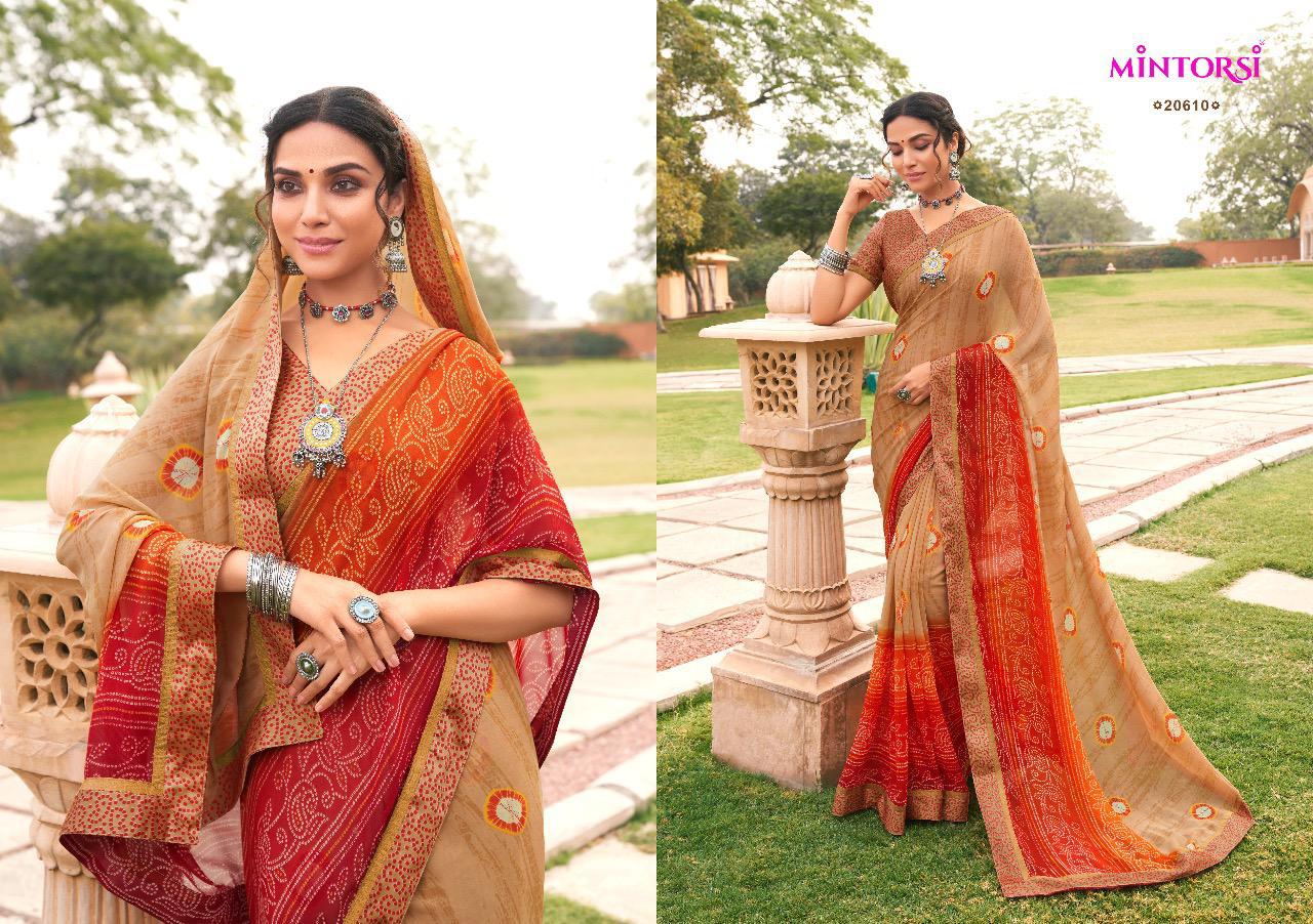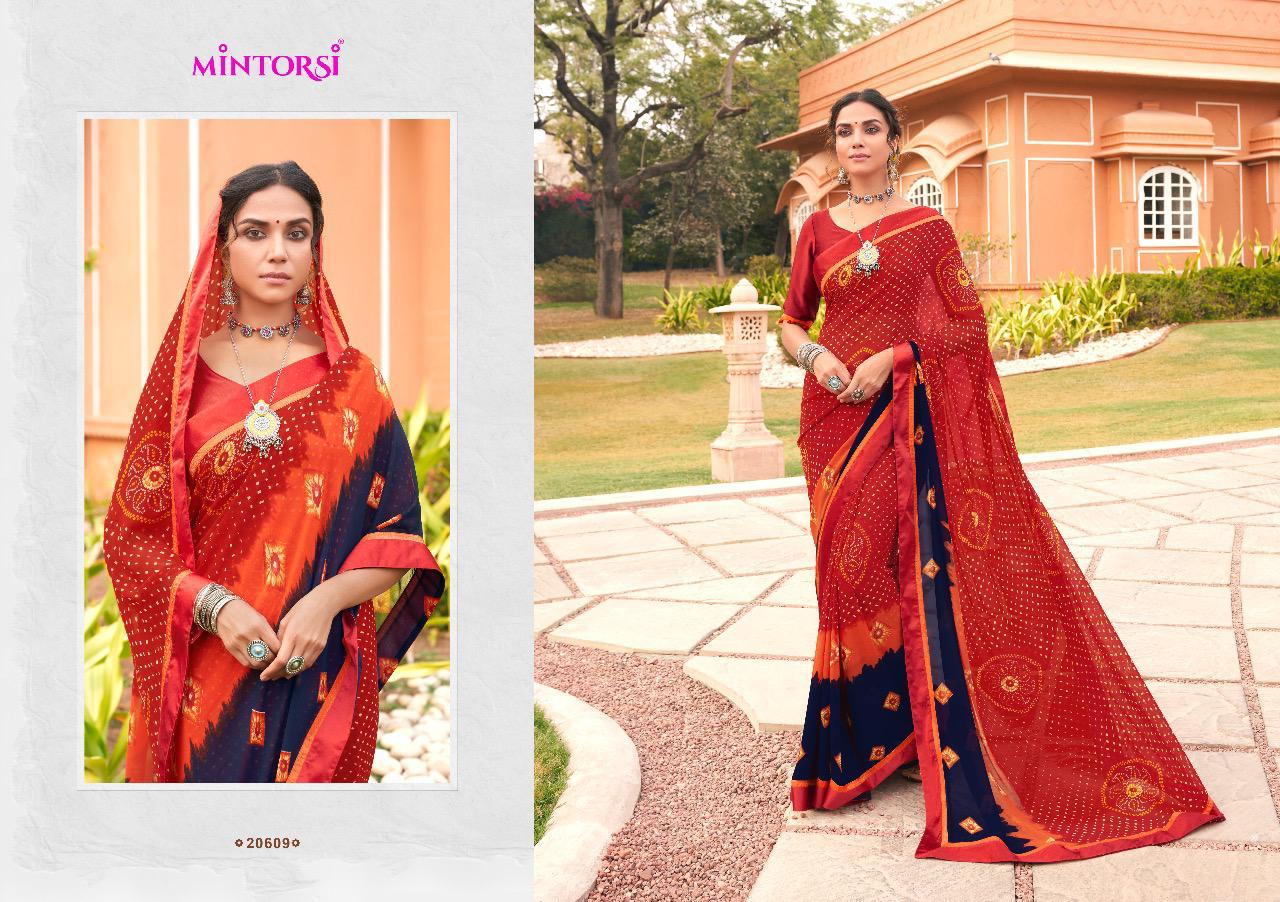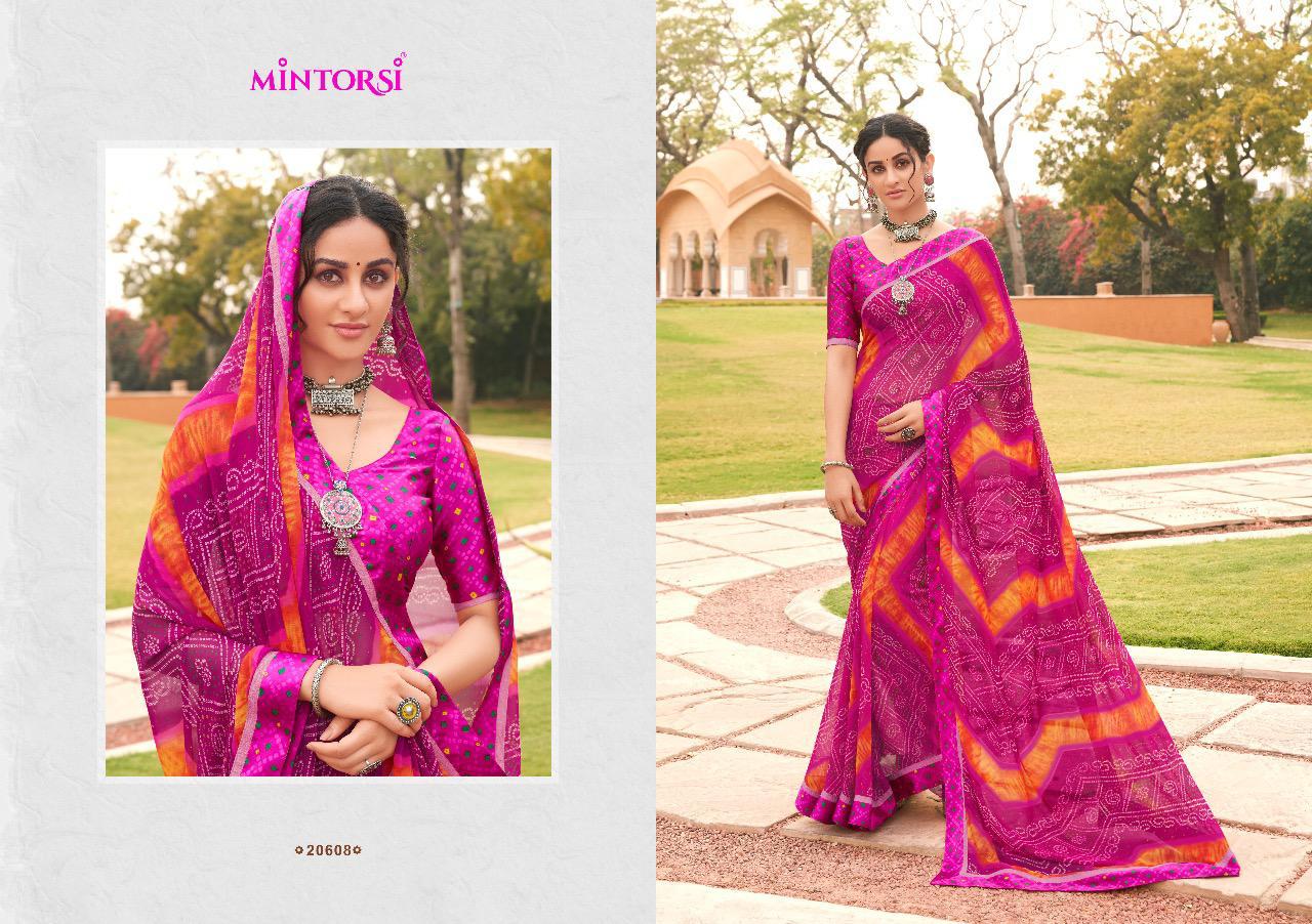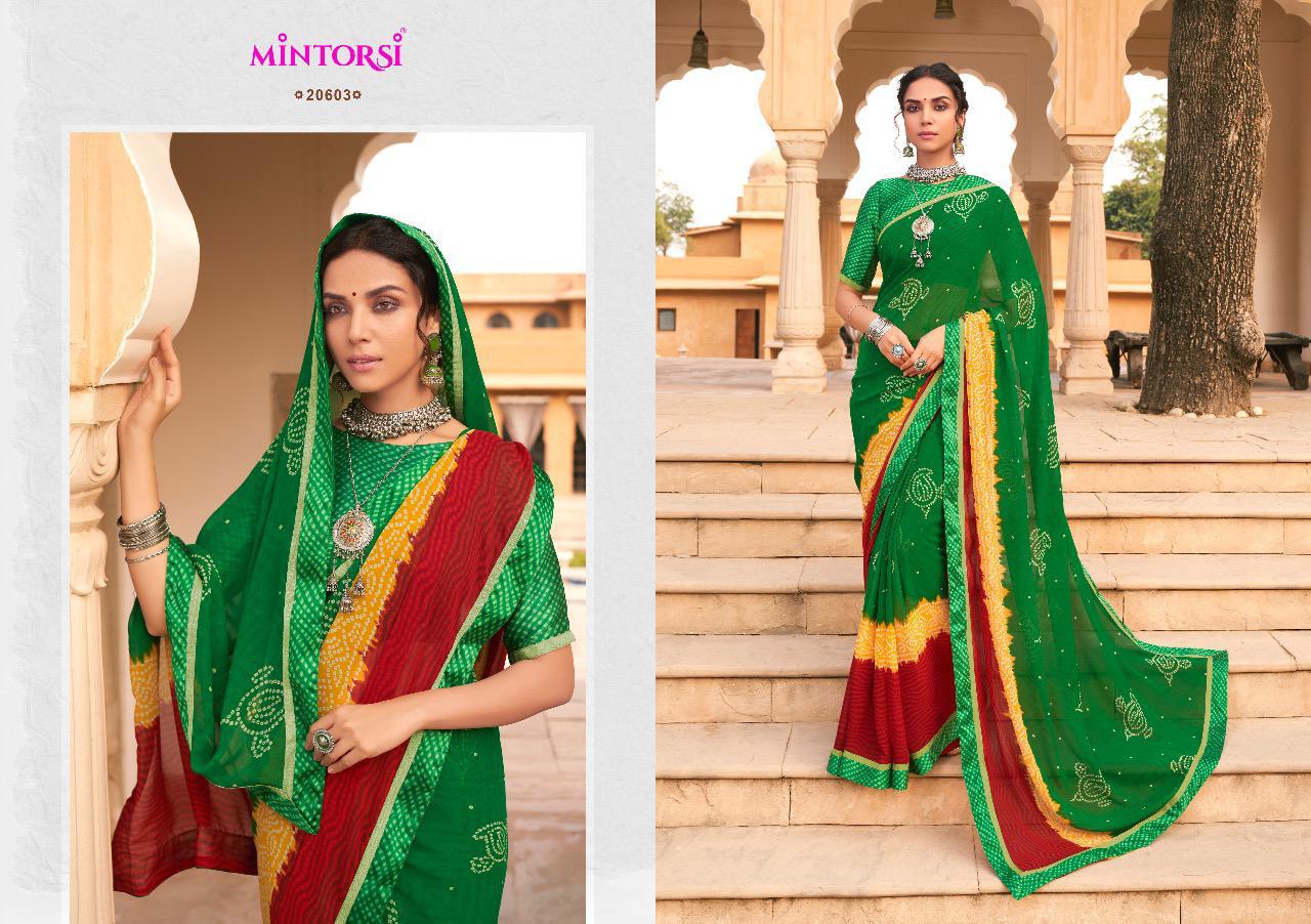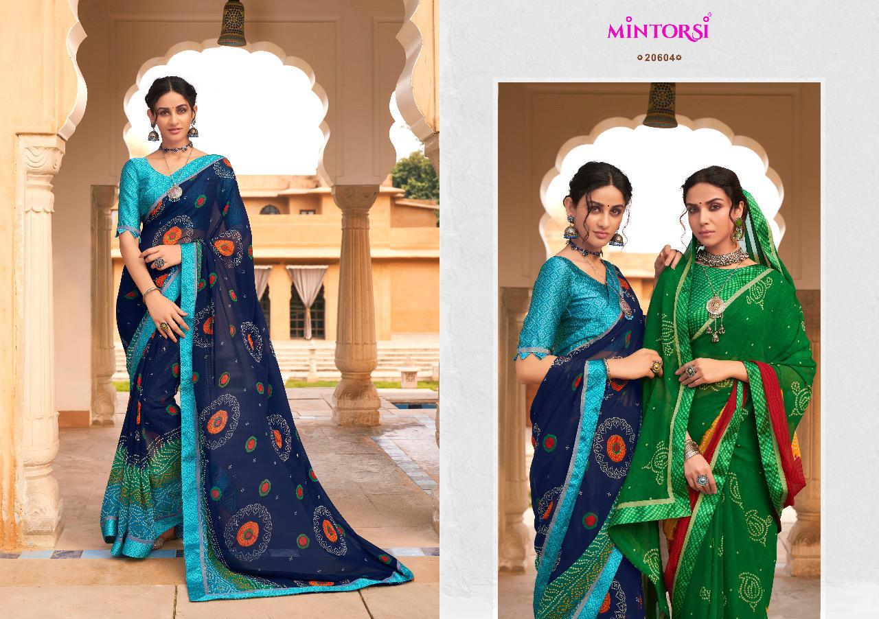 MINTORSI Designer Bandhej Saree Cataloge name - Gun Gun Series -20601 to 20610 Fabric - Weightless With Satin Lace And Satin Blouse ? Total Design - 10 * set & loose & singel * Per Pcs rate-695+gst Single extra 100 Delivery from today |