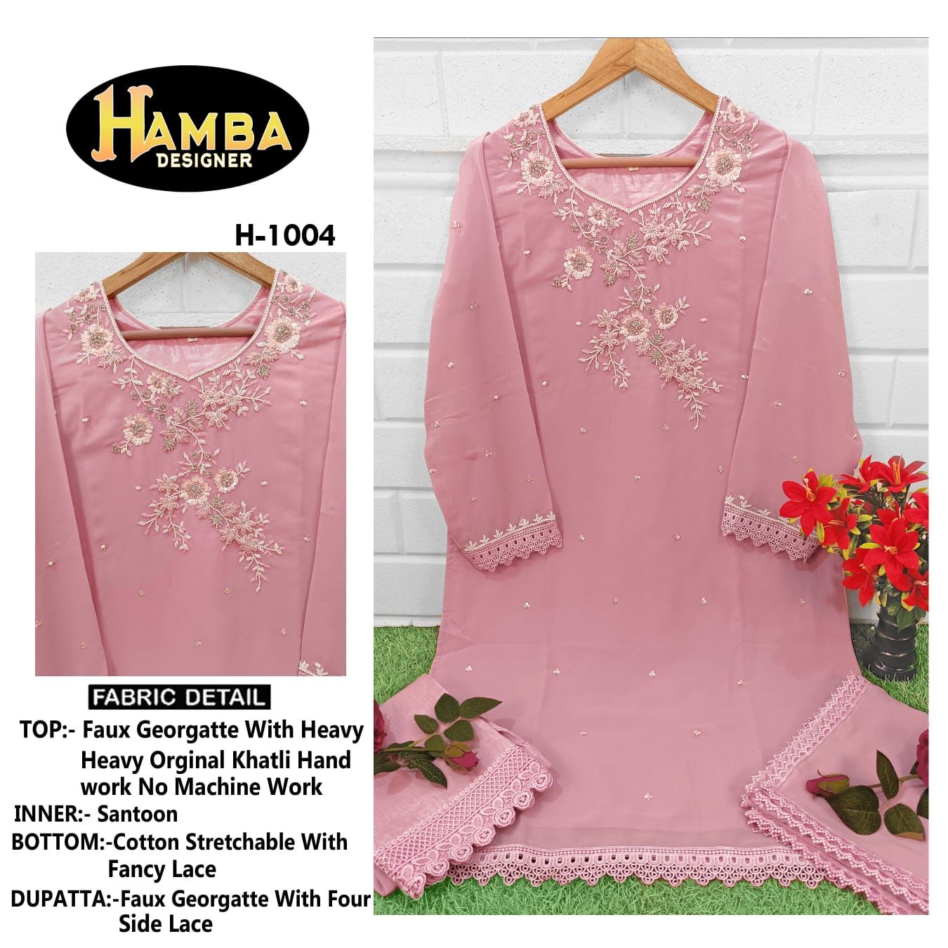 H 1004 Hamba Designer Hand Work And Khatli Work Suits