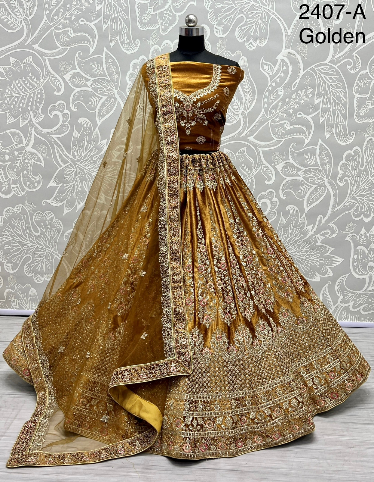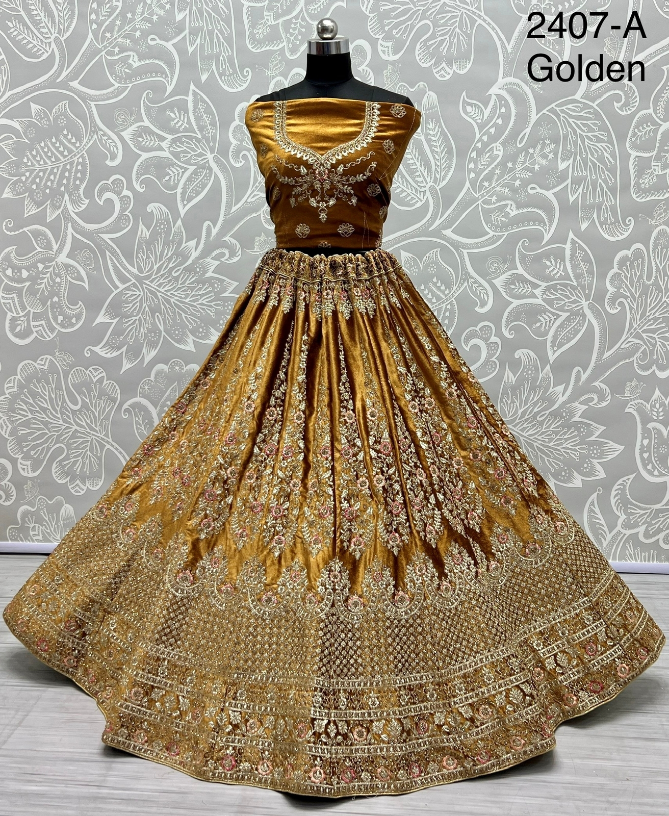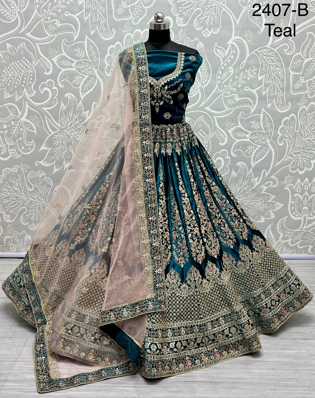 Buy Online Heavy Velvet Embroidered Lehenga Choli D No 2407 Single And Set Stockiest And Supplier From Surat 4 Pcs of Full Catalogue at Wholesale Price. Looking for Heavy Velvet Embroidered Lehenga Choli D No 2407 Single And Set Stockiest And Supplier From Surat Full Catalouge at Best Price? Buy Now Heavy Velvet Embroidered Lehenga Choli D No 2407 Single And Set Stockiest And Supplier From Surat at Wholesale Rate of Rs 23996 with Total 4 Pcs from authroized dealer and supplier of Brand. Cost of Each piece is just only Rs 5999 which is very low and affordable price to resale the product in your retail store ,This is Surat based Wholesale Supplier & Dealer of Brand. Click on Brand name to Know more about Brand's products.Call or Whatsapp on 9898838984 for booking or enquiry
