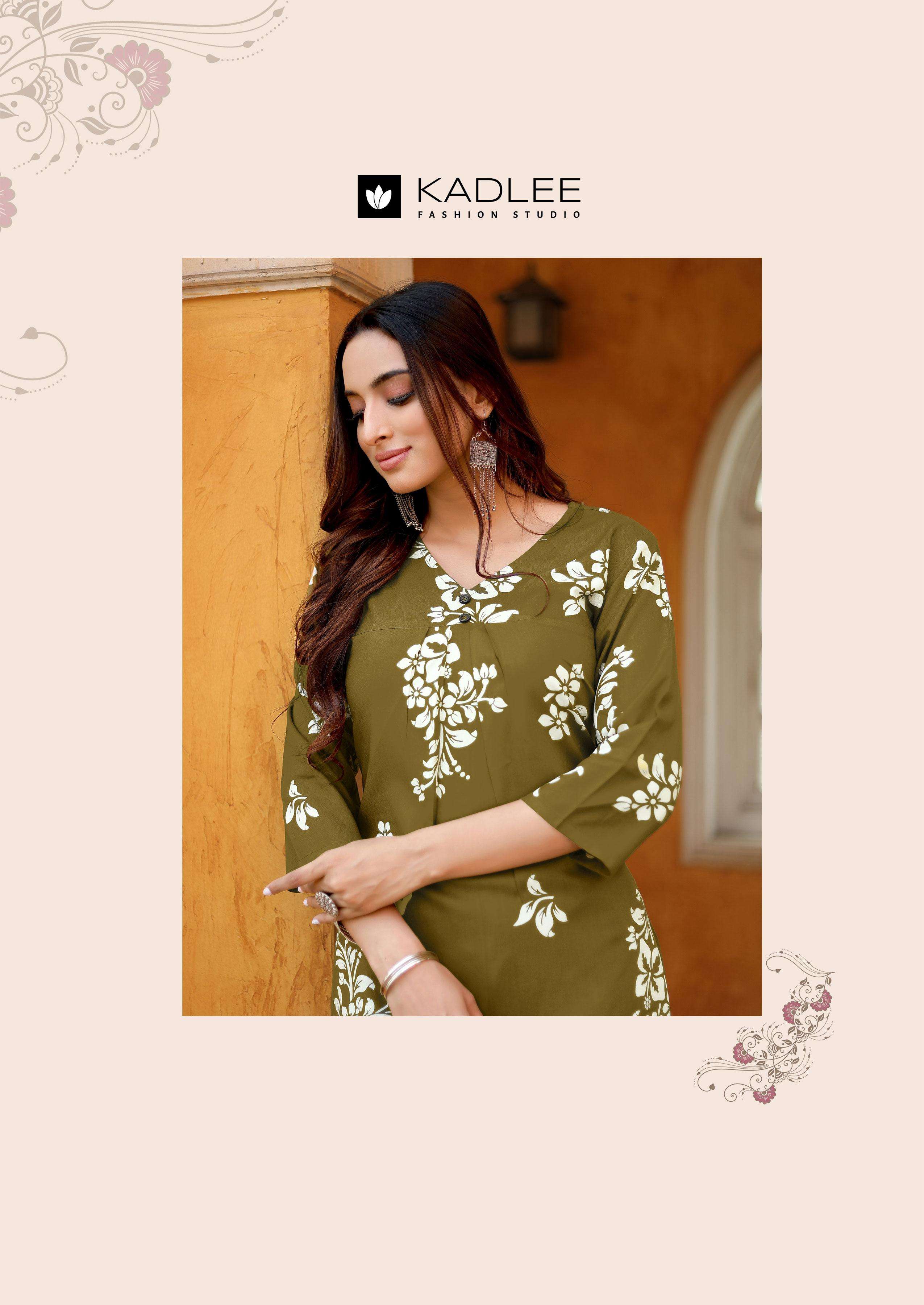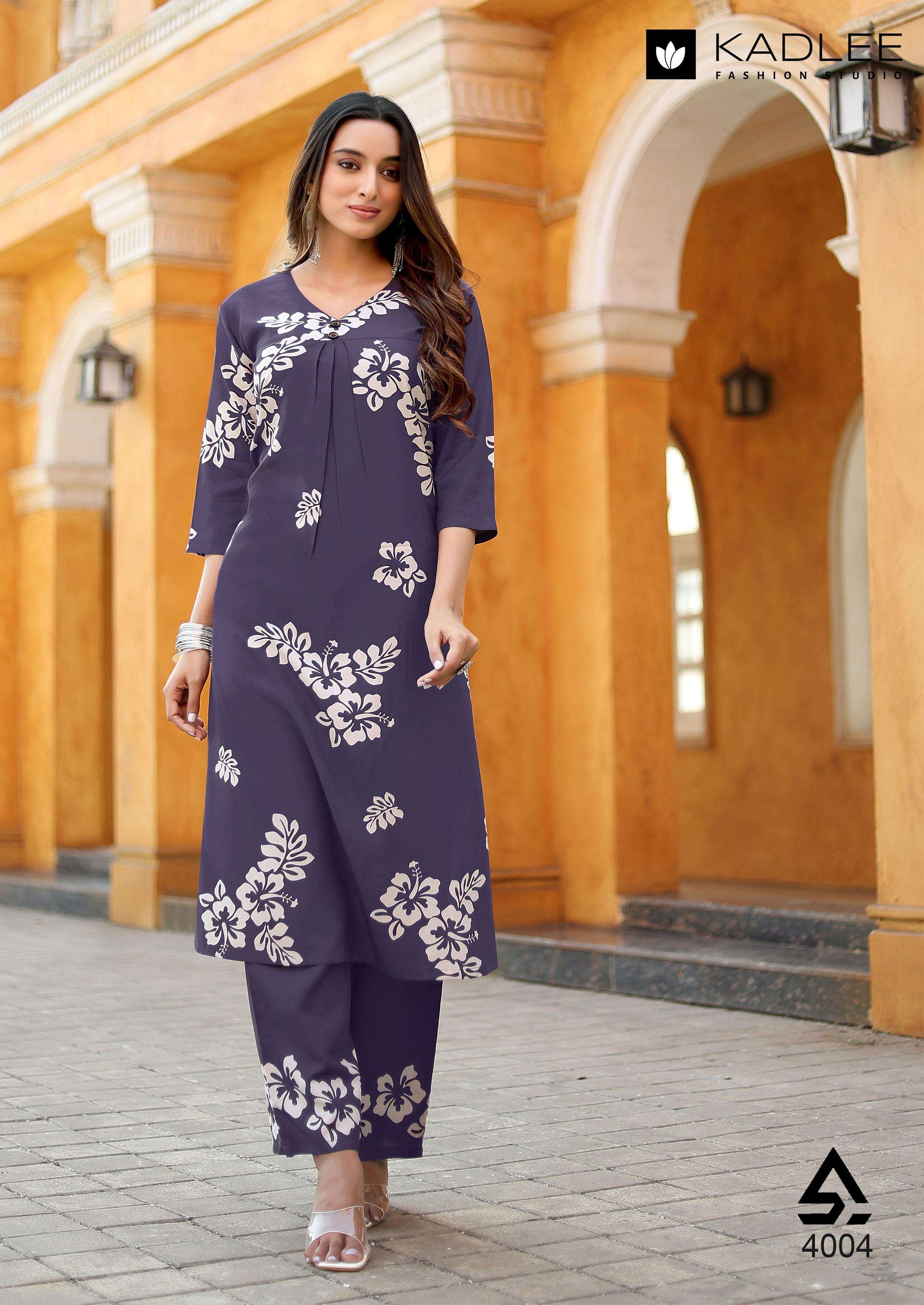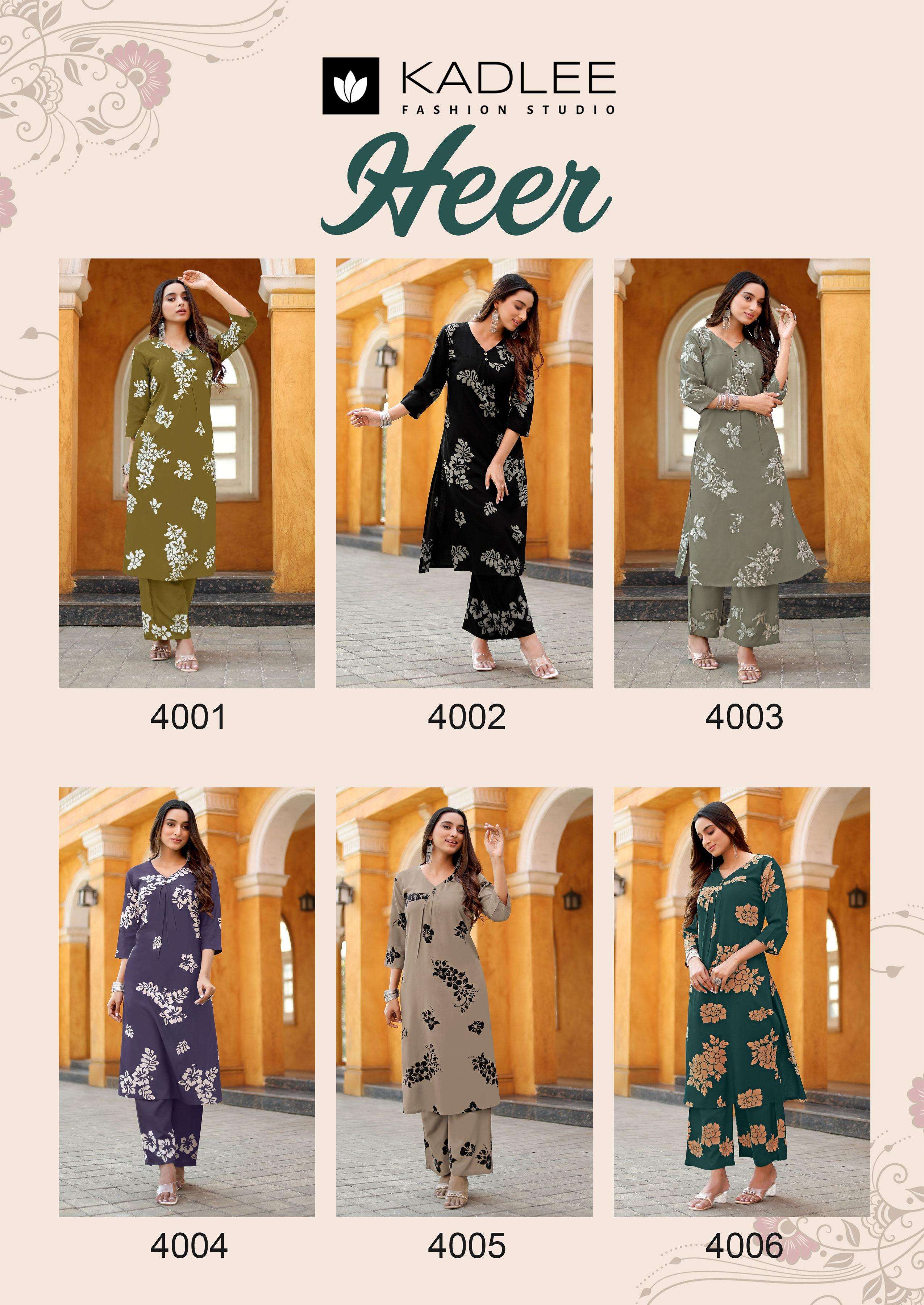 Label : KADLEE Catalog : Heer Design : 6 Top : Rayon Print Bottom : Rayon Print Size : S(36), M(38), L(40), XL(42), XXL(44), 3XL(46)
