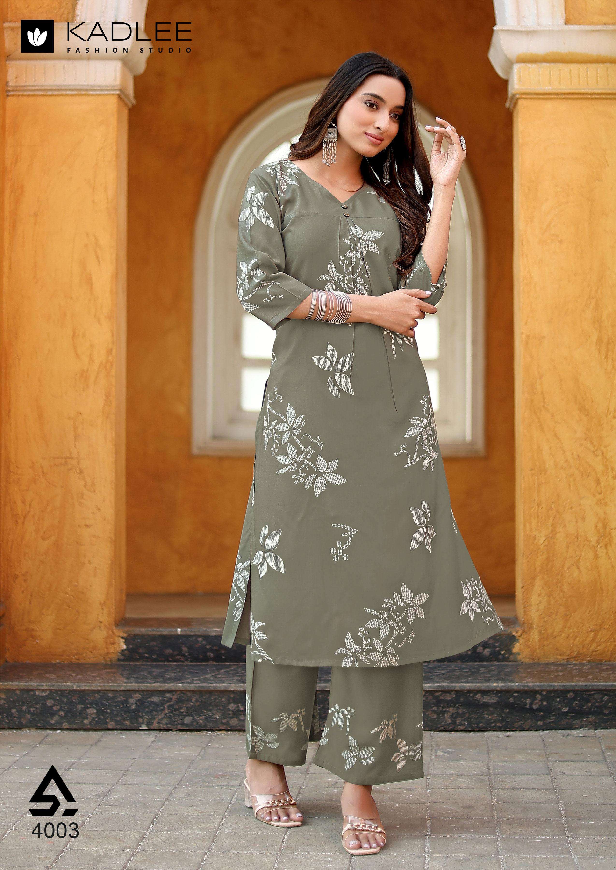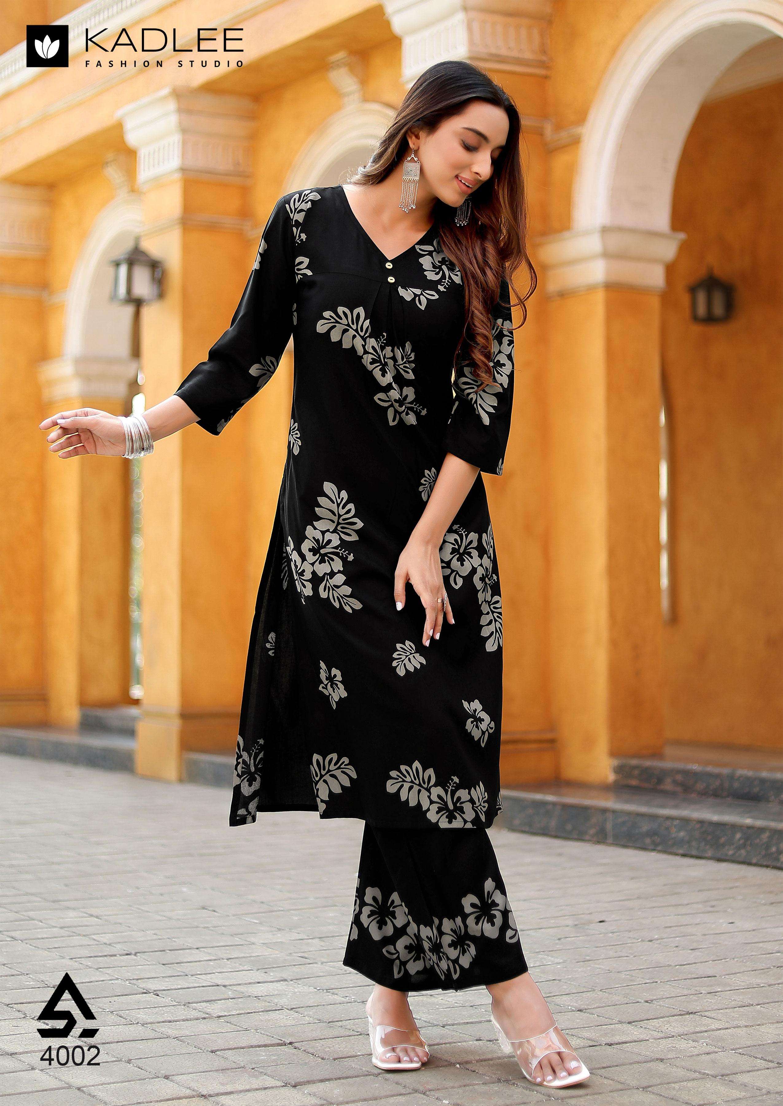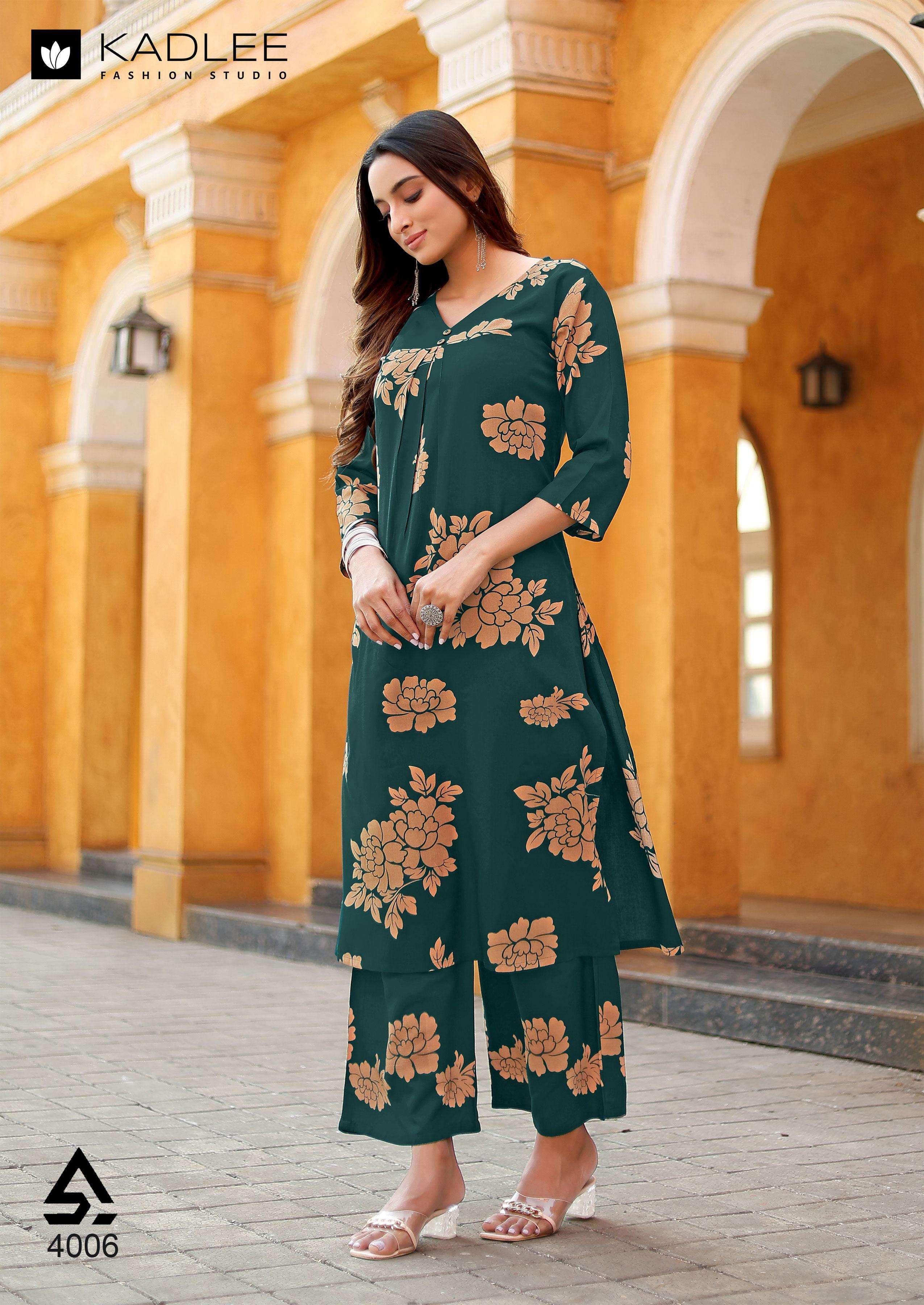 Label : KADLEE Catalog : Heer Design : 6 Top : Rayon Print Bottom : Rayon Print Size : S(36), M(38), L(40), XL(42), XXL(44), 3XL(46)