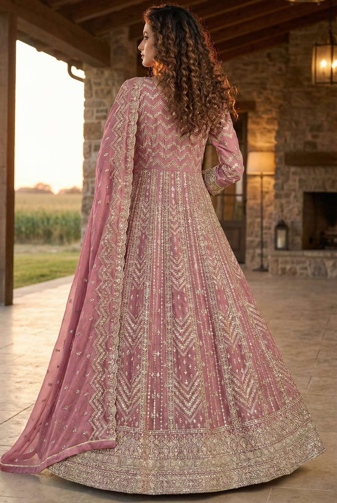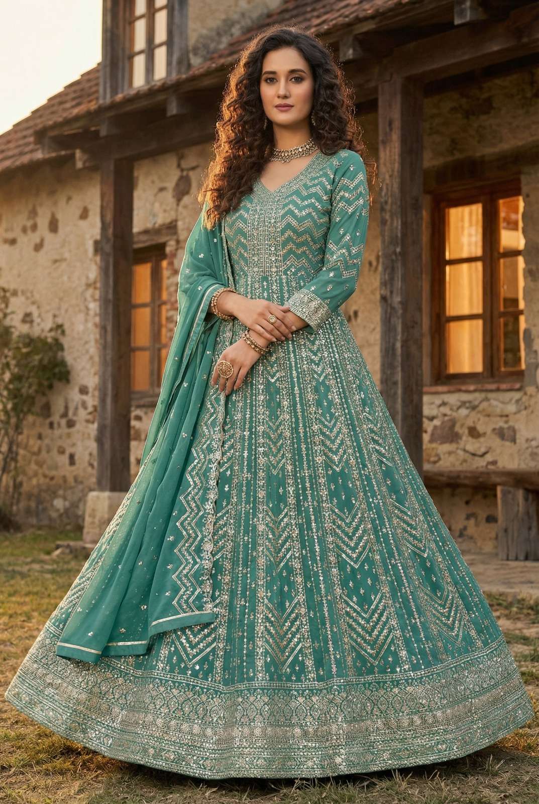 Top / Anarkali: Premium Georgette with Heavy Zari & Thread Embroidery Work (Front & Back Full Work)