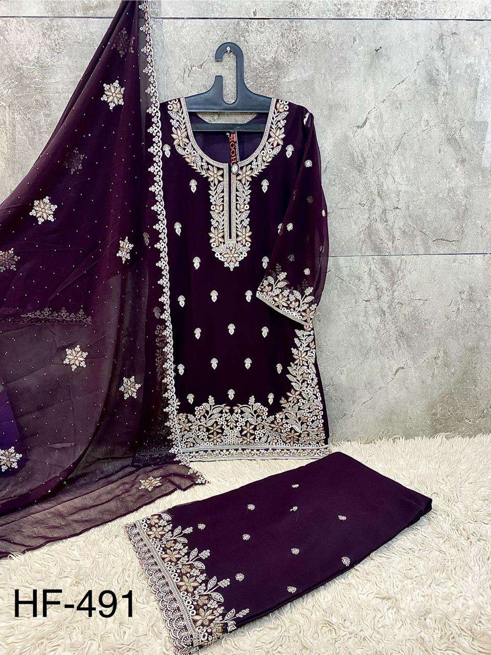 Buy Online HF 491 A To D by Hoor Tex suit collection manufacturers surat 4 Pcs of Full Catalogue at Wholesale Price. Looking for HF 491 A To D by Hoor Tex suit collection manufacturers surat Full Catalouge at Best Price? Buy Now HF 491 A To D by Hoor Tex suit collection manufacturers surat at Wholesale Rate of Rs 6600 with Total 4 Pcs from authroized dealer and supplier of HOOR TEX Brand. Cost of Each piece is just only Rs 1650 which is very low and affordable price to resale the product in your retail store ,This is Surat based Wholesale Supplier & Dealer of HOOR TEX Brand. Click on Brand name to Know more about HOOR TEX Brand's products.Call or Whatsapp on 9898838984 for booking or enquiry