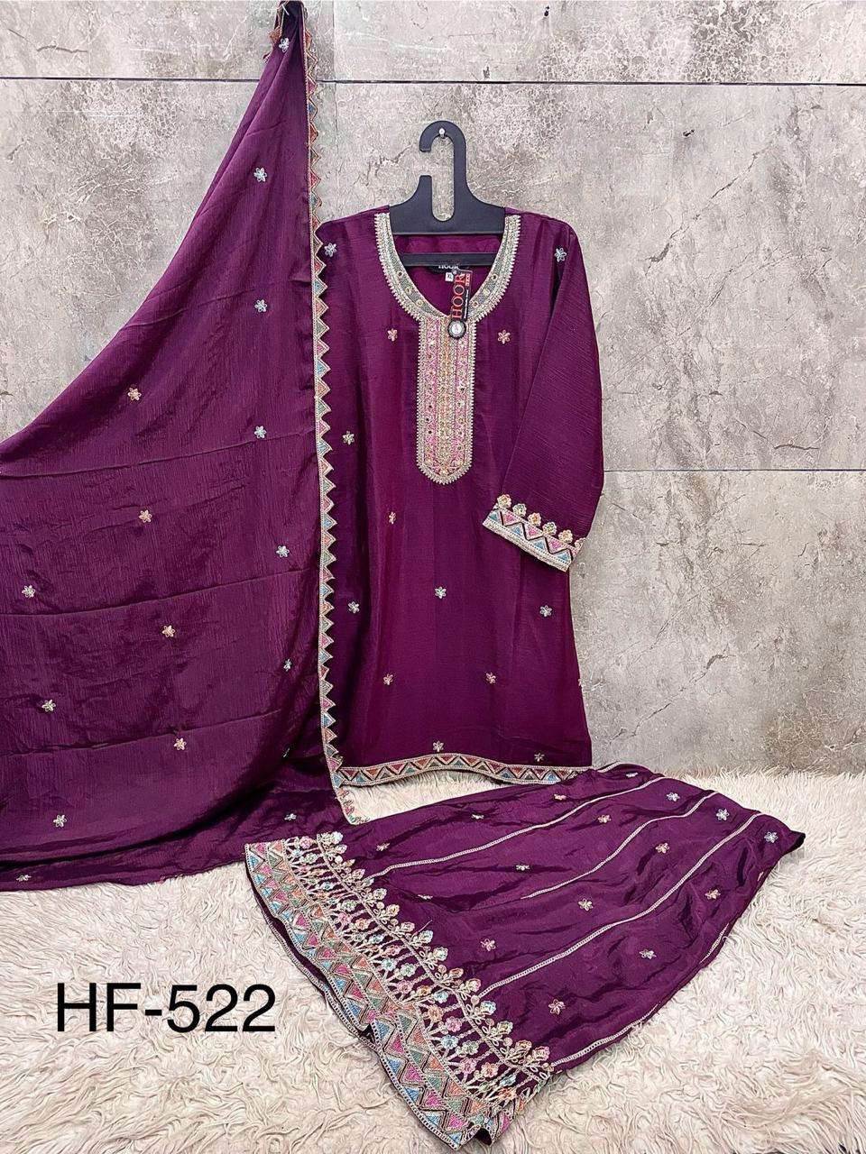 Buy Online HF 522 A To D by Hoor Tex Suit collection manufacturers surat 4 Pcs of Full Catalogue at Wholesale Price. Looking for HF 522 A To D by Hoor Tex Suit collection manufacturers surat Full Catalouge at Best Price? Buy Now HF 522 A To D by Hoor Tex Suit collection manufacturers surat at Wholesale Rate of Rs 5800 with Total 4 Pcs from authroized dealer and supplier of HOOR TEX Brand. Cost of Each piece is just only Rs 1450 which is very low and affordable price to resale the product in your retail store ,This is Surat based Wholesale Supplier & Dealer of HOOR TEX Brand. Click on Brand name to Know more about HOOR TEX Brand's products.Call or Whatsapp on 9898838984 for booking or enquiry