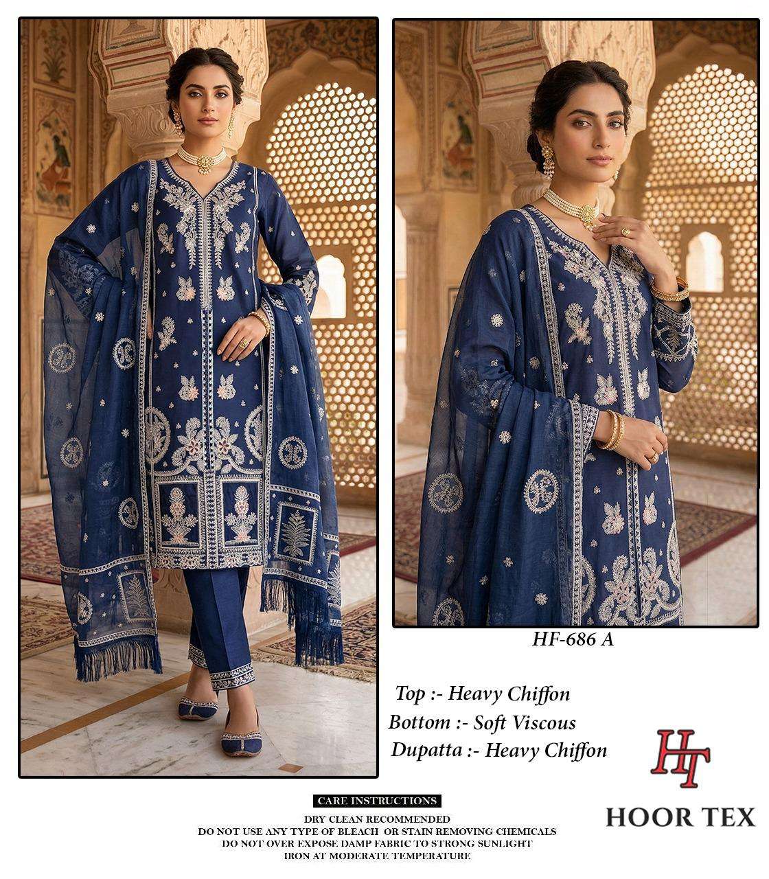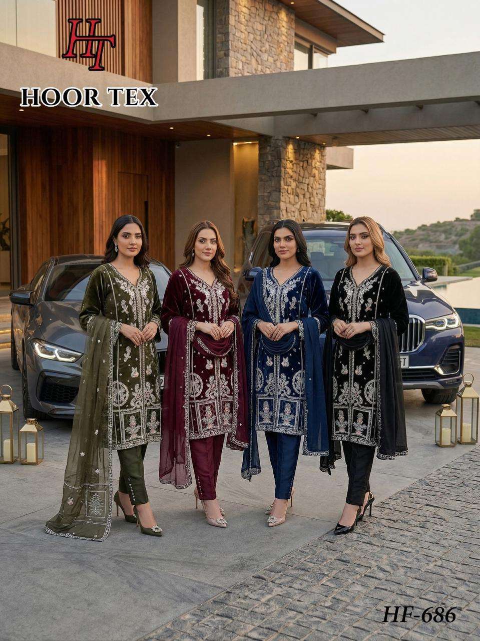 Buy Online HF 686 A To D by Hoor Tex suit collection manufacturers surat 4 Pcs of Full Catalogue at Wholesale Price. Looking for HF 686 A To D by Hoor Tex suit collection manufacturers surat Full Catalouge at Best Price? Buy Now HF 686 A To D by Hoor Tex suit collection manufacturers surat at Wholesale Rate of Rs 6200 with Total 4 Pcs from authroized dealer and supplier of HOOR TEX Brand. Cost of Each piece is just only Rs 1550 which is very low and affordable price to resale the product in your retail store ,This is Surat based Wholesale Supplier & Dealer of HOOR TEX Brand. Click on Brand name to Know more about HOOR TEX Brand's products.Call or Whatsapp on 9898838984 for booking or enquiry