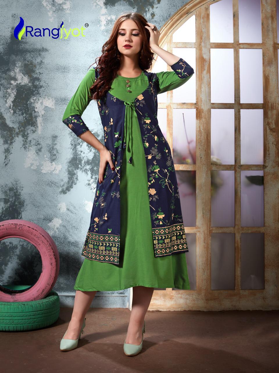 ?????????????? R A N G J Y O T Â?? This seasion *RANGJYOT* brand is bringing the Kurties of cool prices comfortable to wear for making all the days good. ? ? Catalog Name - *High Line Vol-1* ? Design - 10 Pis ?Fabric - *14 Kg Rayon* ?? Concept - ATTACH SHURG PATTERN WITH *FOIL* PRINT. ?Size - *M to 3xl* ?Prise - 4??6??5?? per Pcs Set to set. GST 5 Percent Extra ??Dispatch - *2-3 days * #Thanks_for_your_kind_support.?? |
