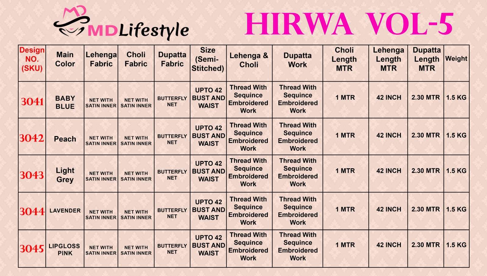 Buy Online HIRWA VOL 5 by MDLIFESTYLE Lehenga Choli Collection manufacturer surat 5 Pcs of Full Catalogue at Wholesale Price. Looking for HIRWA VOL 5 by MDLIFESTYLE Lehenga Choli Collection manufacturer surat Full Catalouge at Best Price? Buy Now HIRWA VOL 5 by MDLIFESTYLE Lehenga Choli Collection manufacturer surat at Wholesale Rate of Rs 10725 with Total 5 Pcs from authroized dealer and supplier of BRAND'S Brand. Cost of Each piece is just only Rs 2145 which is very low and affordable price to resale the product in your retail store ,This is Surat based Wholesale Supplier & Dealer of BRAND'S Brand. Click on Brand name to Know more about BRAND'S Brand's products.Call or Whatsapp on 9898838984 for booking or enquiry