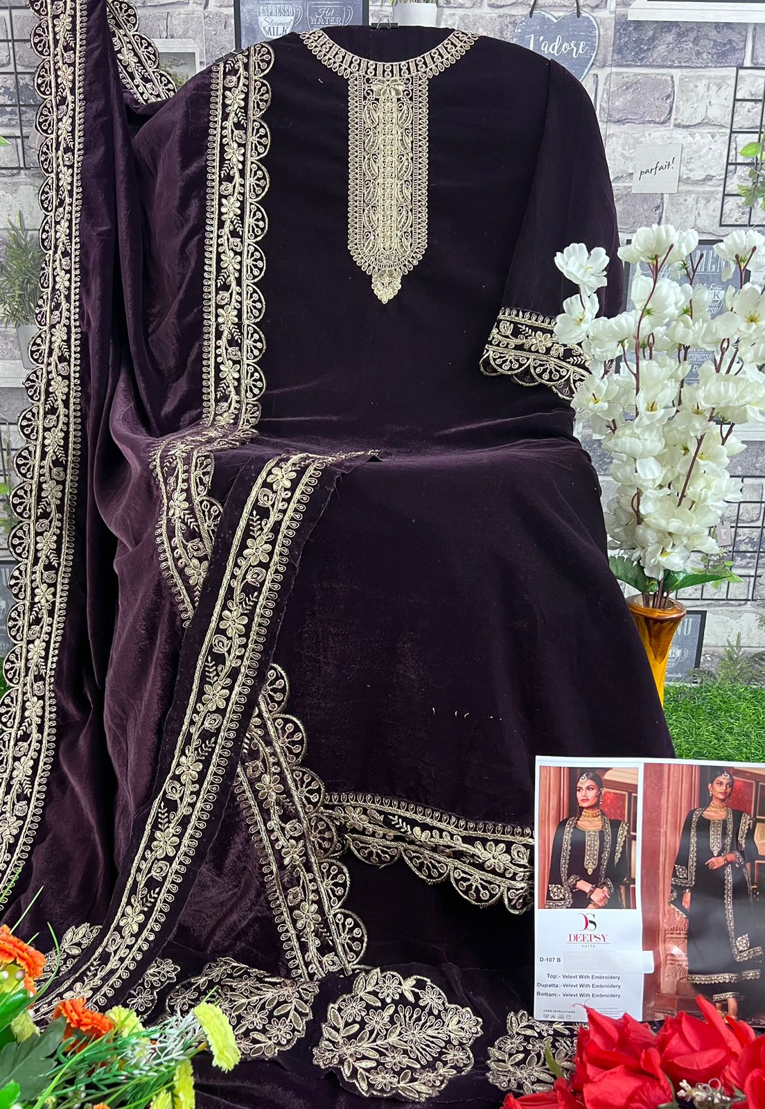 Buy Online Hit Design Of Velvet 107 Abc By Deepsy Suits 3 Pcs of Full Catalogue at Wholesale Price. Looking for Hit Design Of Velvet 107 Abc By Deepsy Suits Full Catalouge at Best Price? Buy Now Hit Design Of Velvet 107 Abc By Deepsy Suits at Wholesale Rate of Rs 4497 with Total 3 Pcs from authroized dealer and supplier of DEEPSY Brand. Cost of Each piece is just only Rs 1499 which is very low and affordable price to resale the product in your retail store ,This is Surat based Wholesale Supplier & Dealer of DEEPSY Brand. Click on Brand name to Know more about DEEPSY Brand's products.Call or Whatsapp on 9898838984 for booking or enquiry