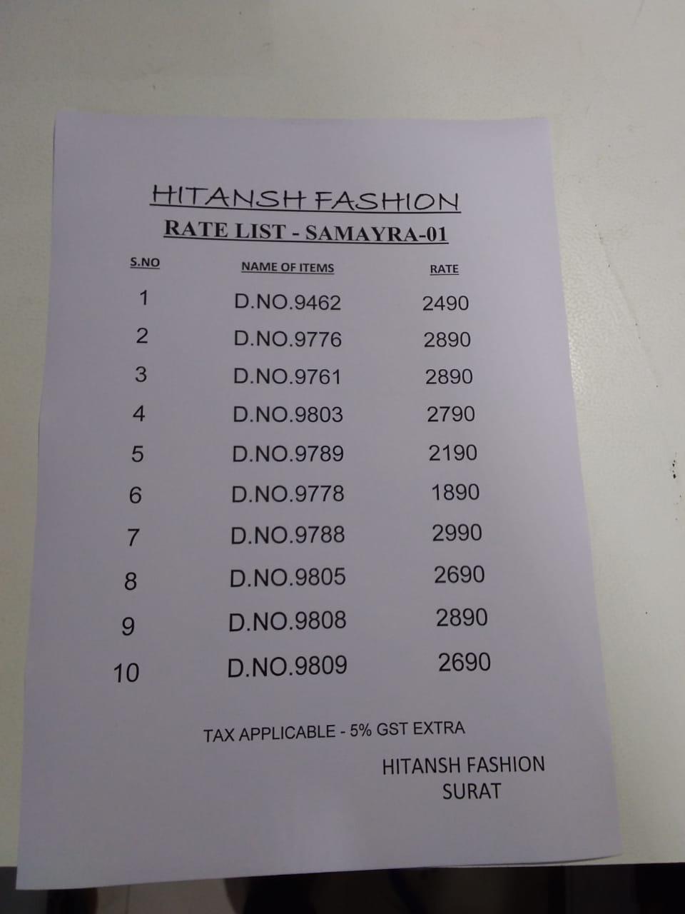 Buy Online Hitansh Samayra Vol 1 Series 9462 Designer Sarees Wholesale Supplier India 0 Pcs of Full Catalogue at Wholesale Price. Looking for Hitansh Samayra Vol 1 Series 9462 Designer Sarees Wholesale Supplier India Full Catalouge at Best Price? Buy Now Hitansh Samayra Vol 1 Series 9462 Designer Sarees Wholesale Supplier India at Wholesale Rate of Rs 0 with Total 0 Pcs from authroized dealer and supplier of BRAND'S Brand. Cost of Each piece is just only Rs 0 which is very low and affordable price to resale the product in your retail store ,This is Surat based Wholesale Supplier & Dealer of BRAND'S Brand. Click on Brand name to Know more about BRAND'S Brand's products.Call or Whatsapp on 9898838984 for booking or enquiry