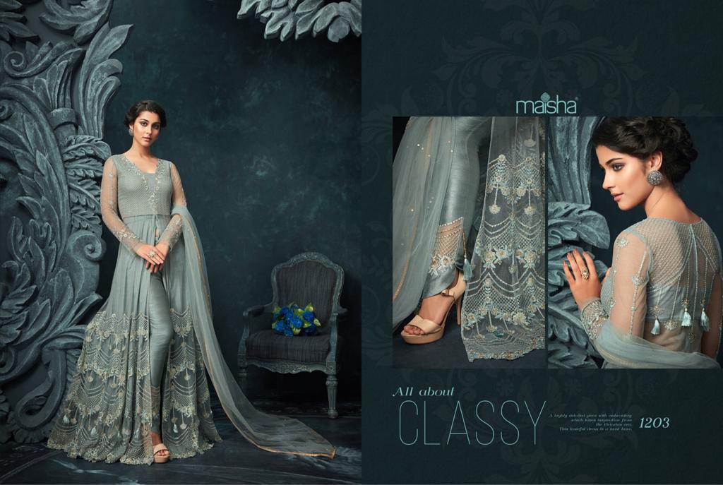 Hugs By Maisha 1201 To 1207 Series Fancy Designer Party Wear Gown Suit Collection Wholesale Dealer And Supplier Surat