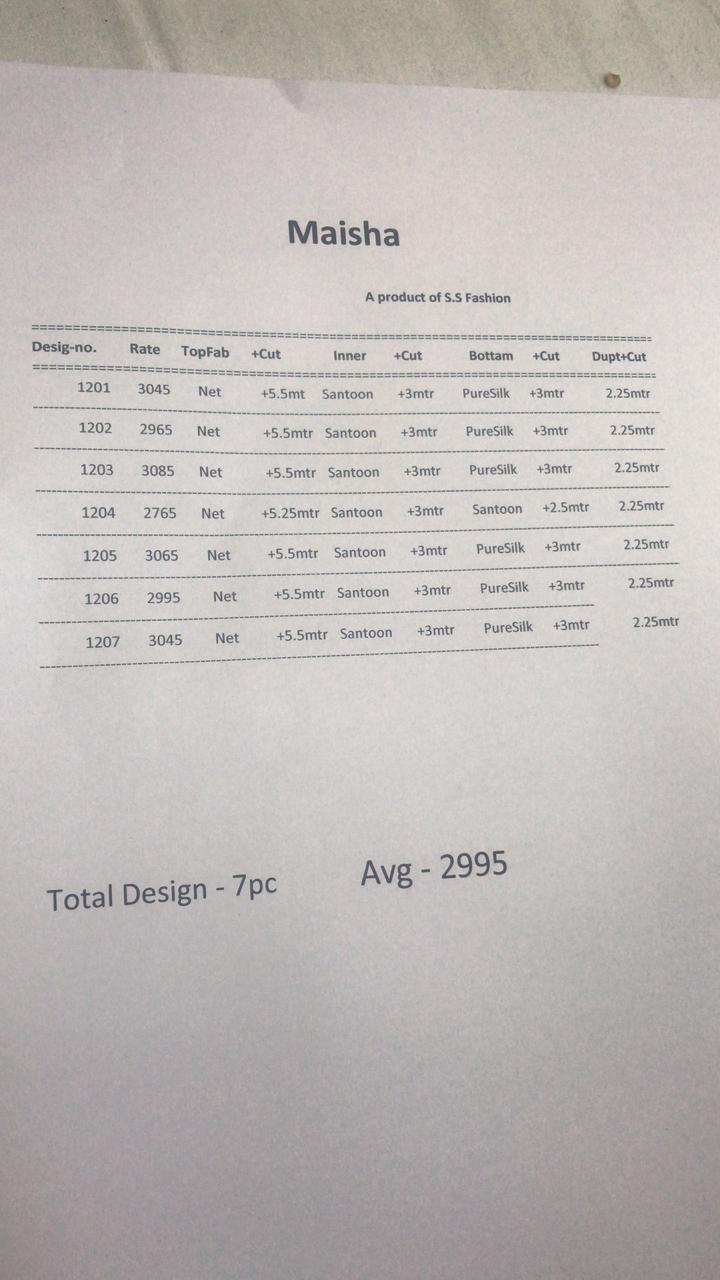 Buy Online Hugs By Maisha 1201 To 1207 Series Fancy Designer Party Wear Gown Suit Collection Wholesale Dealer And Supplier Surat 7 Pcs of Full Catalogue at Wholesale Price. Looking for Hugs By Maisha 1201 To 1207 Series Fancy Designer Party Wear Gown Suit Collection Wholesale Dealer And Supplier Surat Full Catalouge at Best Price? Buy Now Hugs By Maisha 1201 To 1207 Series Fancy Designer Party Wear Gown Suit Collection Wholesale Dealer And Supplier Surat at Wholesale Rate of Rs 20965 with Total 7 Pcs from authroized dealer and supplier of MAISHA Brand. Cost of Each piece is just only Rs 2995 which is very low and affordable price to resale the product in your retail store ,This is Surat based Wholesale Supplier & Dealer of MAISHA Brand. Click on Brand name to Know more about MAISHA Brand's products.Call or Whatsapp on 9898838984 for booking or enquiry