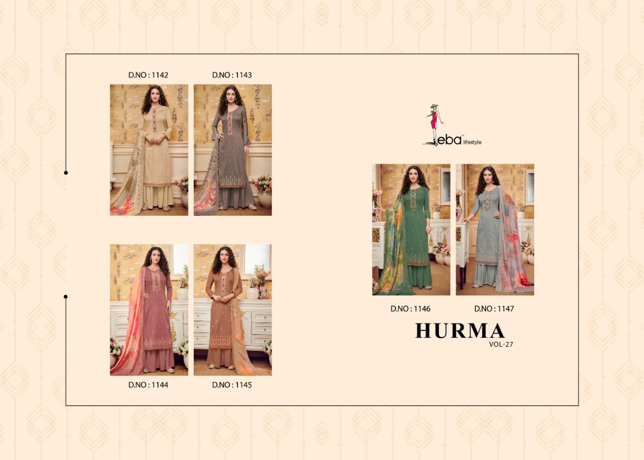 Hurma Vol 27 By Eba Lifestyle Series 1142 To 1147 Designer Suits Wholesale Supplier India