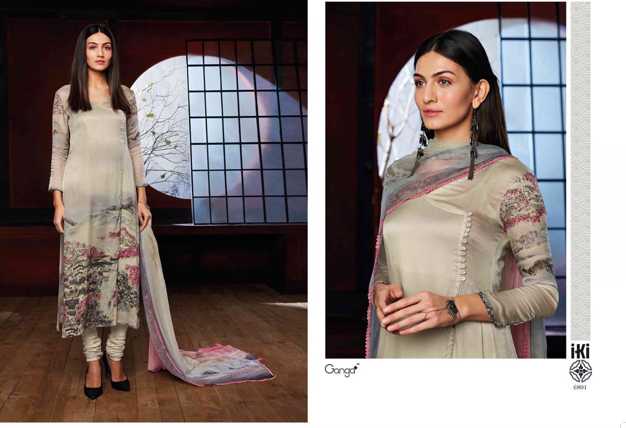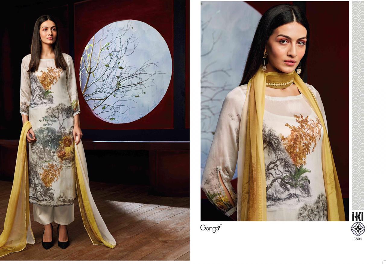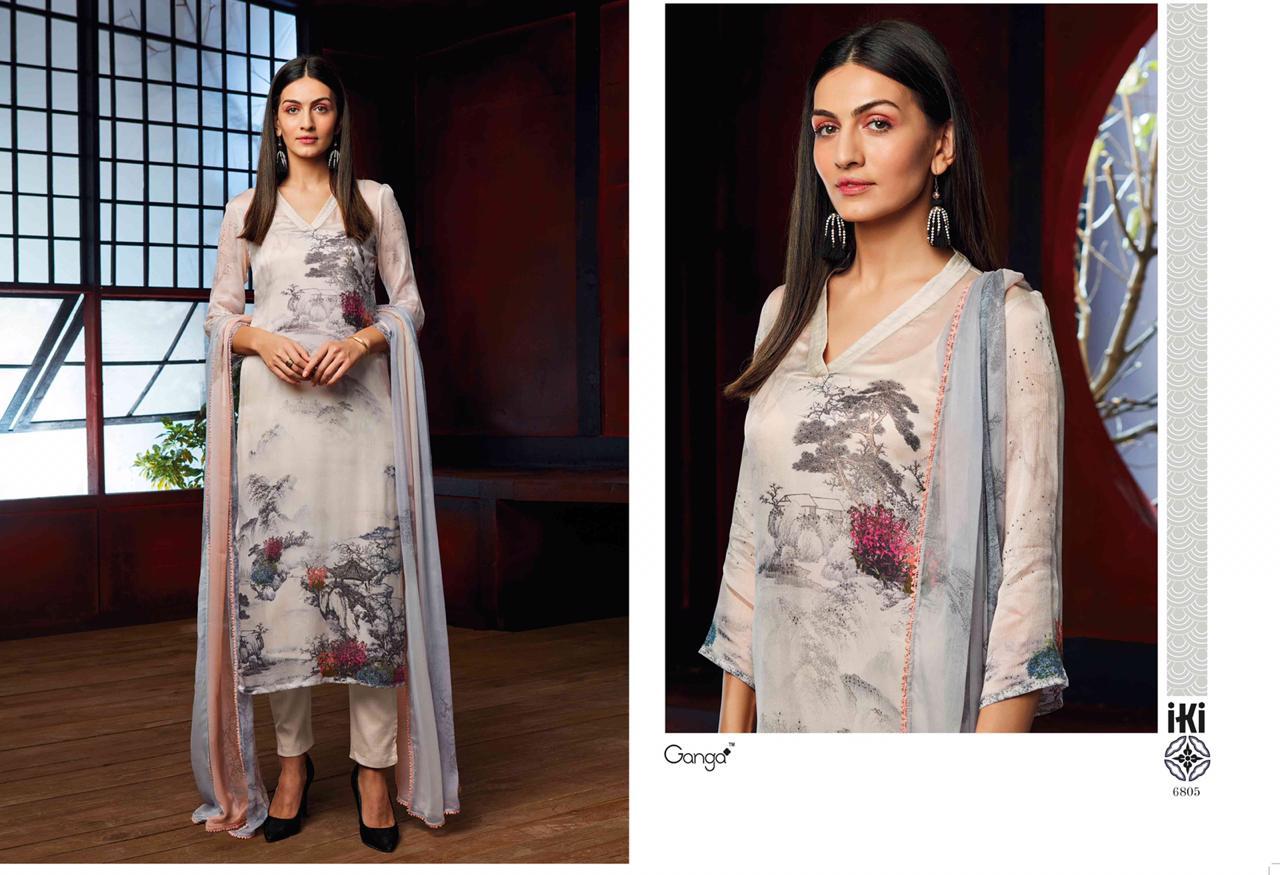 Iki By Ganga 6801 Series Fancy Pure Silk Satin Printed Salwar Kameez Catlog Wholesale Dealer Surat