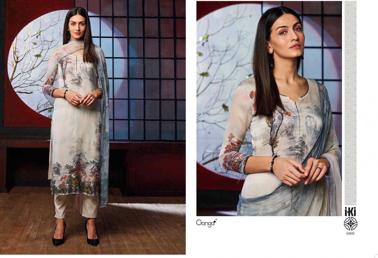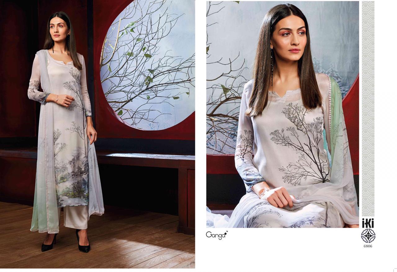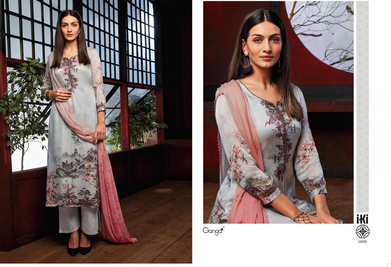 Iki By Ganga 6801 Series Fancy Pure Silk Satin Printed Salwar Kameez Catlog Wholesale Dealer Surat
