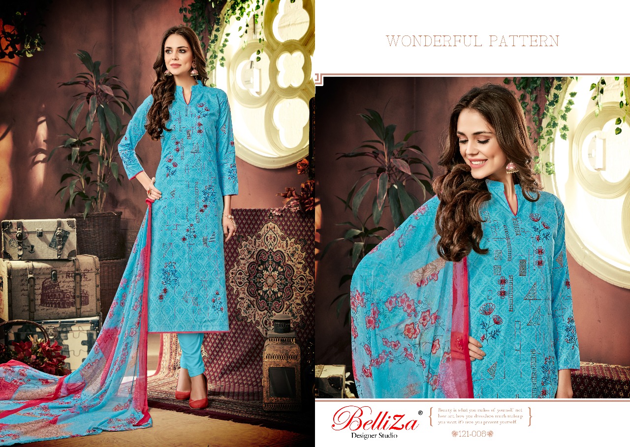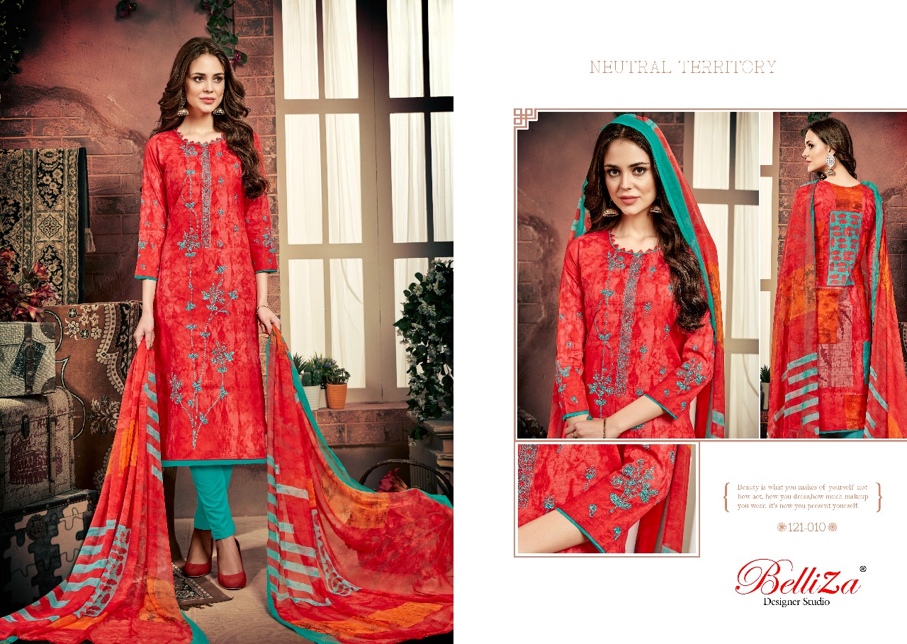 Buy Online Inayat By Belliza Designer Studio 121001 Series Fancy Cotton Digital Printed Salwar Kameez Catlog Wholesaler Surat 10 Pcs of Full Catalogue at Wholesale Price. Looking for Inayat By Belliza Designer Studio 121001 Series Fancy Cotton Digital Printed Salwar Kameez Catlog Wholesaler Surat Full Catalouge at Best Price? Buy Now Inayat By Belliza Designer Studio 121001 Series Fancy Cotton Digital Printed Salwar Kameez Catlog Wholesaler Surat at Wholesale Rate of Rs 6300 with Total 10 Pcs from authroized dealer and supplier of Belliza Designer studio Brand. Cost of Each piece is just only Rs 630 which is very low and affordable price to resale the product in your retail store ,This is Surat based Wholesale Supplier & Dealer of Belliza Designer studio Brand. Click on Brand name to Know more about Belliza Designer studio Brand's products.Call or Whatsapp on 9898838984 for booking or enquiry