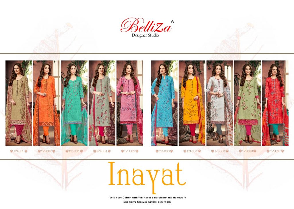 Buy Online Inayat By Belliza Designer Studio 121001 Series Fancy Cotton Digital Printed Salwar Kameez Catlog Wholesaler Surat 10 Pcs of Full Catalogue at Wholesale Price. Looking for Inayat By Belliza Designer Studio 121001 Series Fancy Cotton Digital Printed Salwar Kameez Catlog Wholesaler Surat Full Catalouge at Best Price? Buy Now Inayat By Belliza Designer Studio 121001 Series Fancy Cotton Digital Printed Salwar Kameez Catlog Wholesaler Surat at Wholesale Rate of Rs 6300 with Total 10 Pcs from authroized dealer and supplier of Belliza Designer studio Brand. Cost of Each piece is just only Rs 630 which is very low and affordable price to resale the product in your retail store ,This is Surat based Wholesale Supplier & Dealer of Belliza Designer studio Brand. Click on Brand name to Know more about Belliza Designer studio Brand's products.Call or Whatsapp on 9898838984 for booking or enquiry