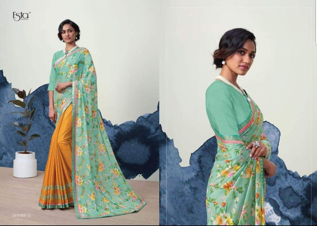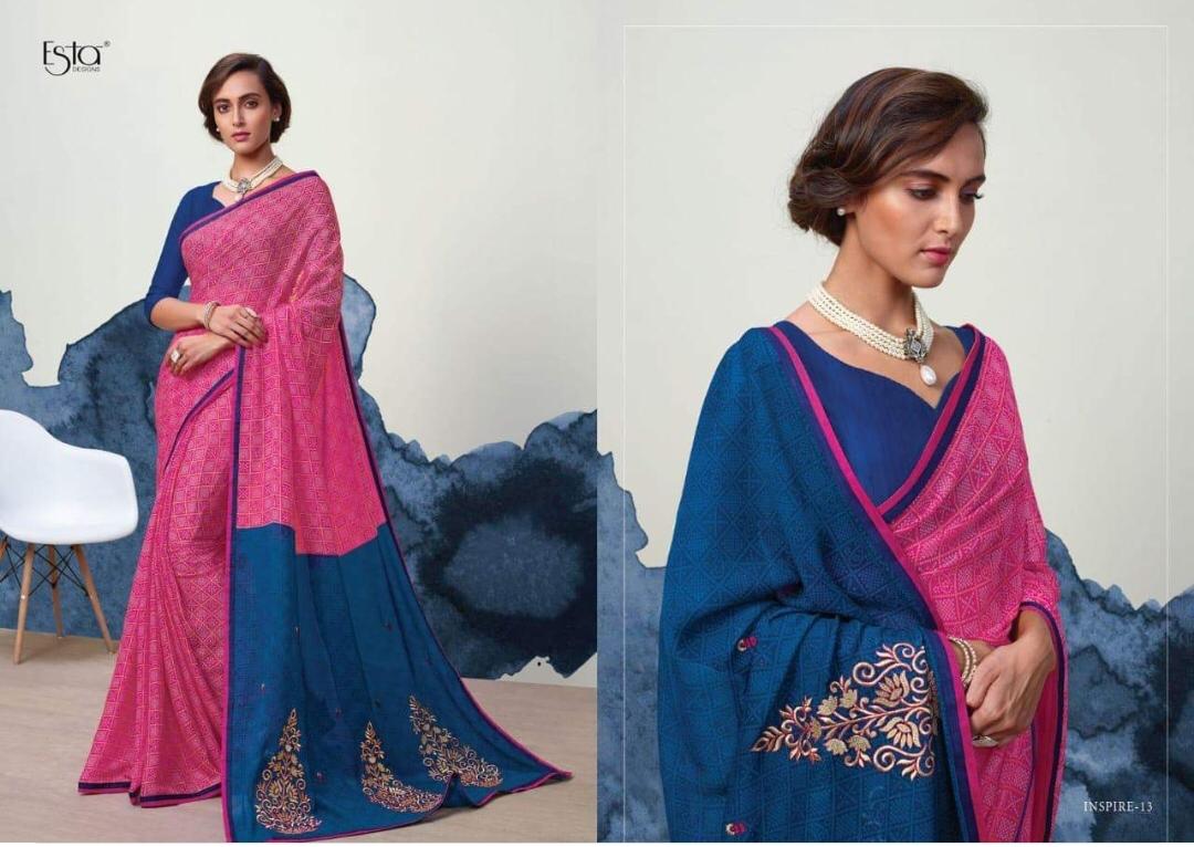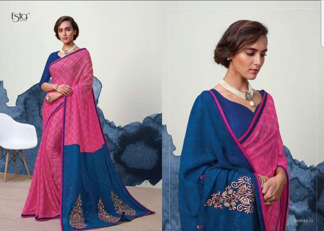 Buy Online Inspire By Esta Fancy Designer Party Wear Sarees Wholesale Supplier India 13 Pcs of Full Catalogue at Wholesale Price. Looking for Inspire By Esta Fancy Designer Party Wear Sarees Wholesale Supplier India Full Catalouge at Best Price? Buy Now Inspire By Esta Fancy Designer Party Wear Sarees Wholesale Supplier India at Wholesale Rate of Rs 13377 with Total 13 Pcs from authroized dealer and supplier of BRAND'S Brand. Cost of Each piece is just only Rs 1029 which is very low and affordable price to resale the product in your retail store ,This is Surat based Wholesale Supplier & Dealer of BRAND'S Brand. Click on Brand name to Know more about BRAND'S Brand's products.Call or Whatsapp on 9898838984 for booking or enquiry
