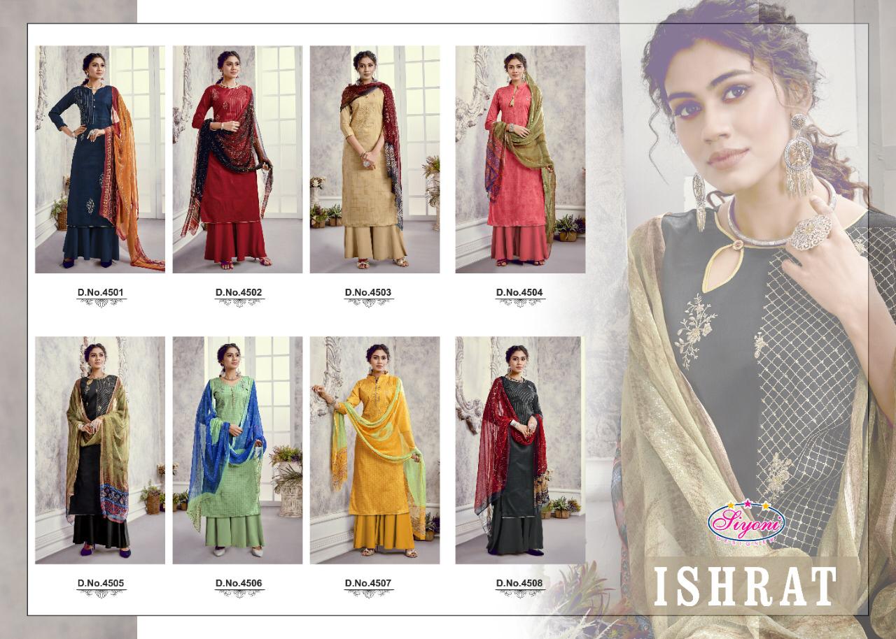 Buy Online Ishrat By Siyoni Designer Party Wear Suits Wholesale Supplier Gujarat 8 Pcs of Full Catalogue at Wholesale Price. Looking for Ishrat By Siyoni Designer Party Wear Suits Wholesale Supplier Gujarat Full Catalouge at Best Price? Buy Now Ishrat By Siyoni Designer Party Wear Suits Wholesale Supplier Gujarat at Wholesale Rate of Rs 6120 with Total 8 Pcs from authroized dealer and supplier of Brand. Cost of Each piece is just only Rs 765 which is very low and affordable price to resale the product in your retail store ,This is Surat based Wholesale Supplier & Dealer of Brand. Click on Brand name to Know more about Brand's products.Call or Whatsapp on 9898838984 for booking or enquiry