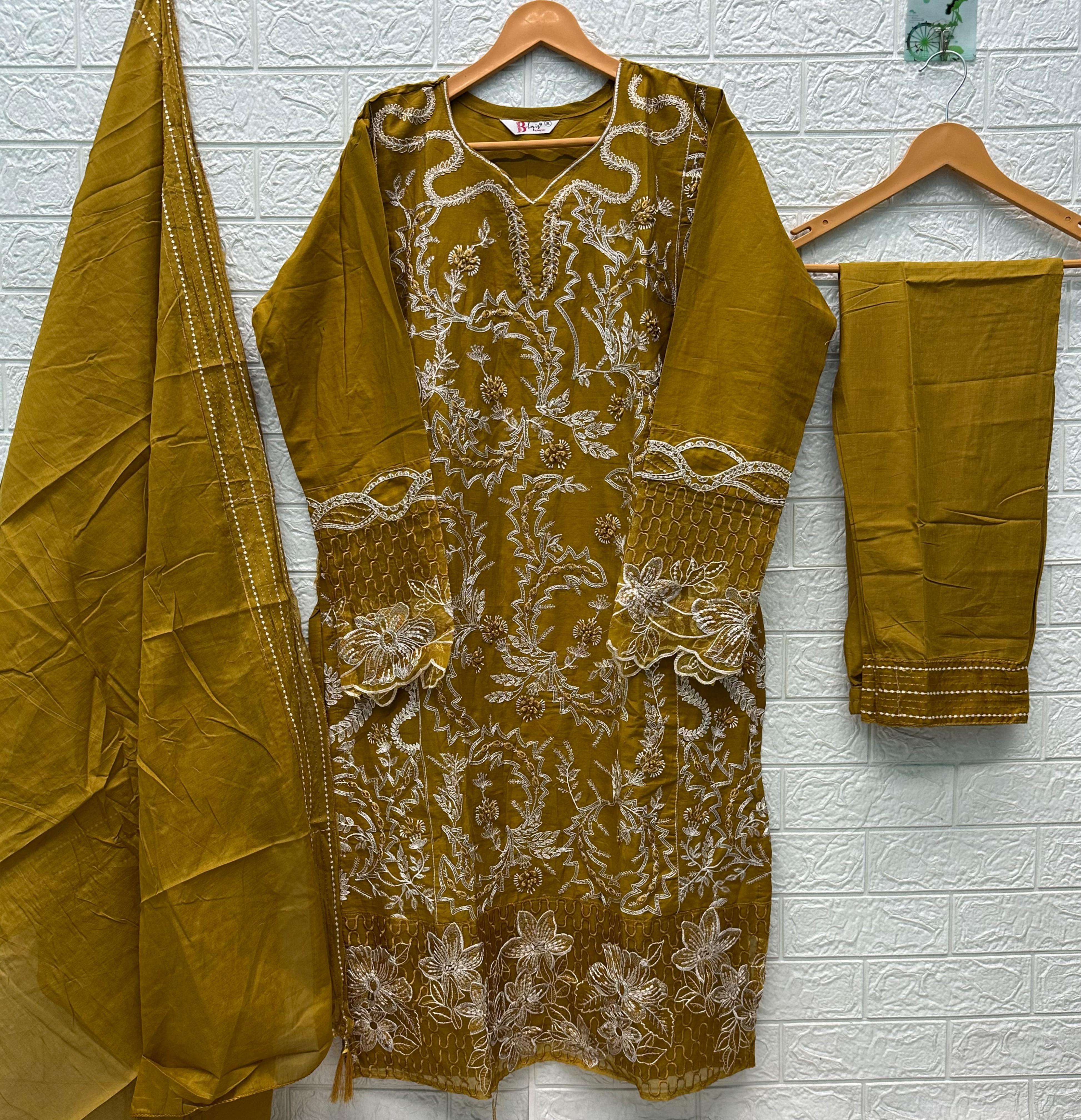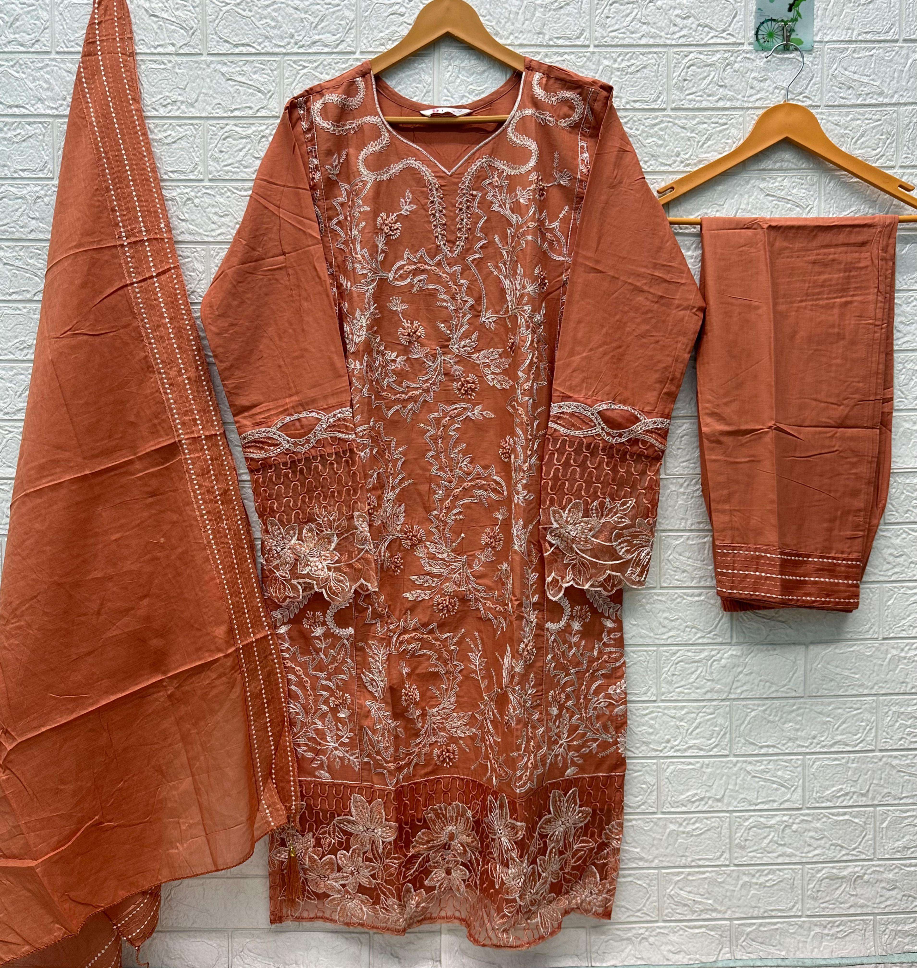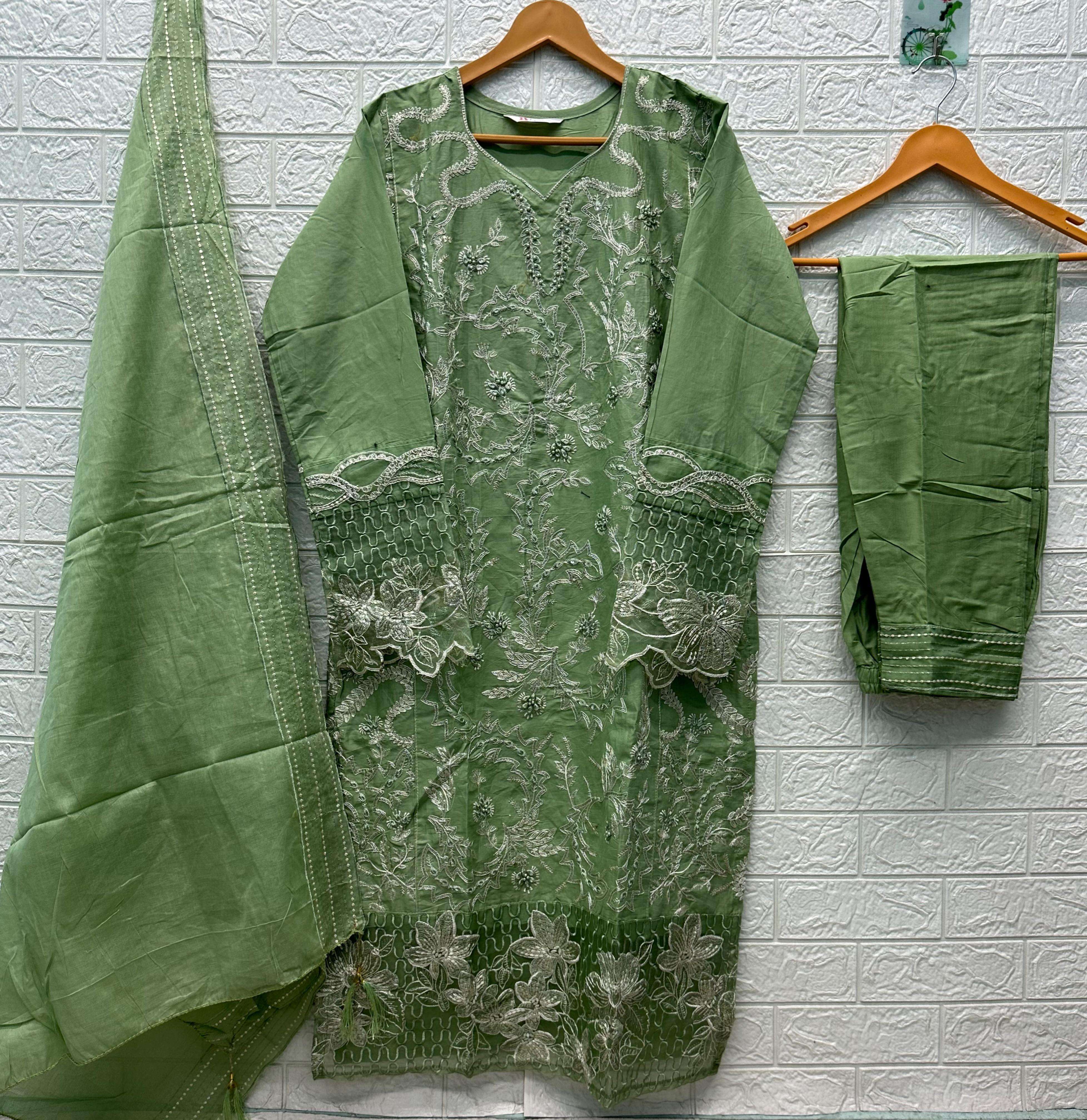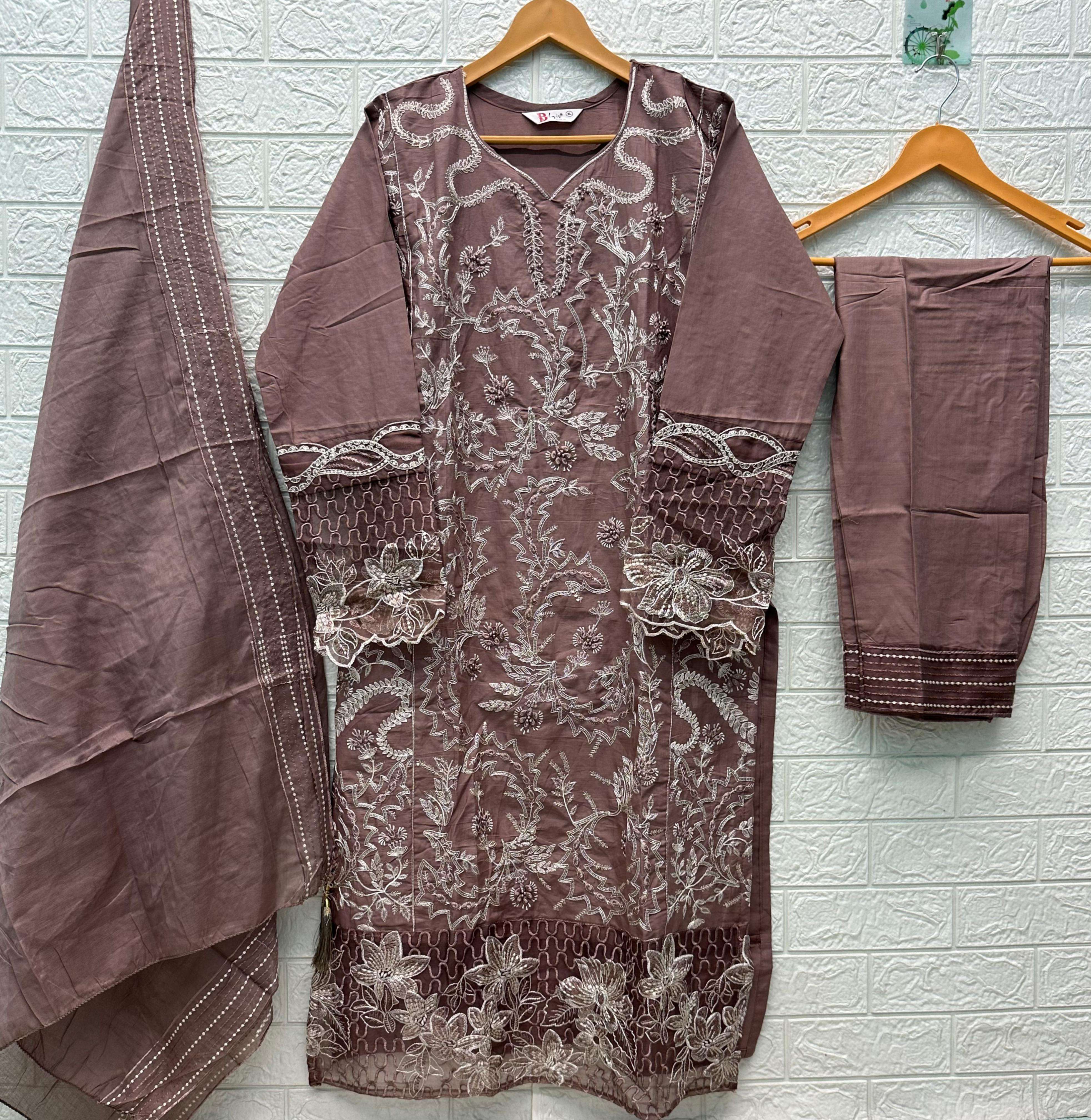 TOP - *CAMBRIC LAWN COTTON* HEAVY EMBROIDERED WITH *PEARLS* BOTTOM - *CAMBRIC LAWN COTTON* DUPATTA - *COTTON HEAVY EMBROIDERED*