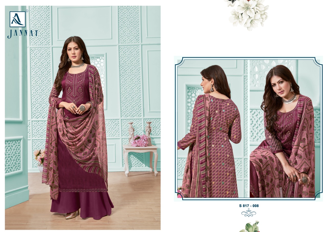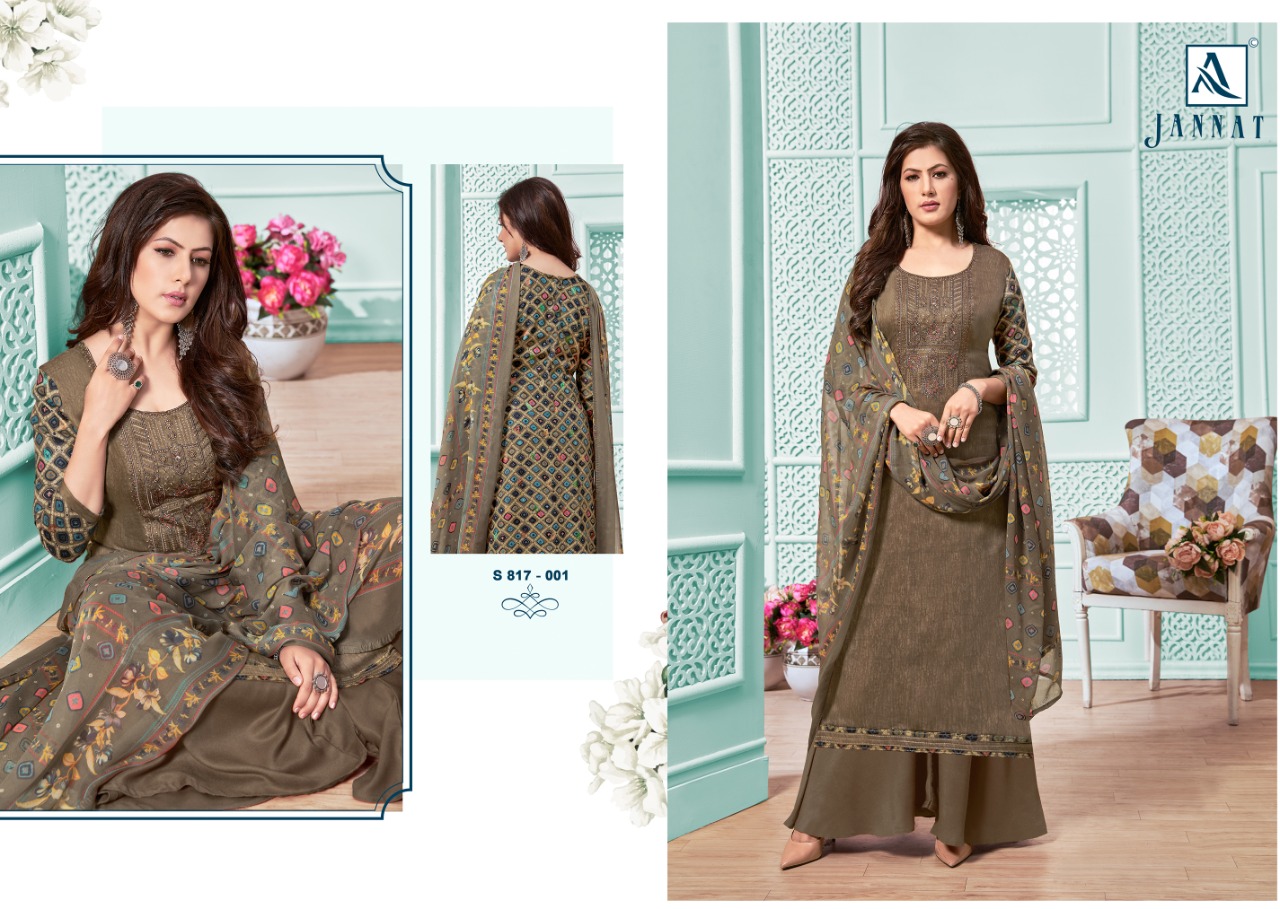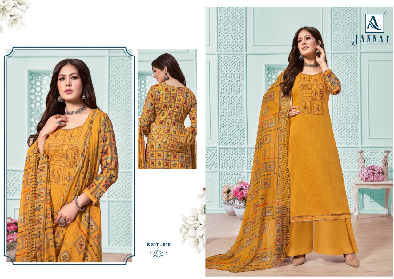 Buy Online Jannat By Alok Suit Wholesale Supplier Traders In Surat 10 Pcs of Full Catalogue at Wholesale Price. Looking for Jannat By Alok Suit Wholesale Supplier Traders In Surat Full Catalouge at Best Price? Buy Now Jannat By Alok Suit Wholesale Supplier Traders In Surat at Wholesale Rate of Rs 5750 with Total 10 Pcs from authroized dealer and supplier of Brand. Cost of Each piece is just only Rs 575 which is very low and affordable price to resale the product in your retail store ,This is Surat based Wholesale Supplier & Dealer of Brand. Click on Brand name to Know more about Brand's products.Call or Whatsapp on 9898838984 for booking or enquiry