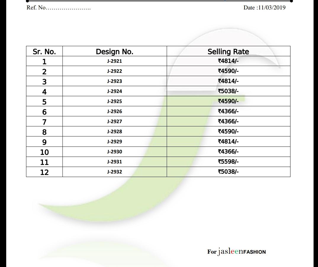 Jasleen kaashi series J2921 to J2932 fancy Designer Party wear sarees Wholesale supplier nitya nx surat Set To Set Price list attached Single Extra 100 on company price list +gst |