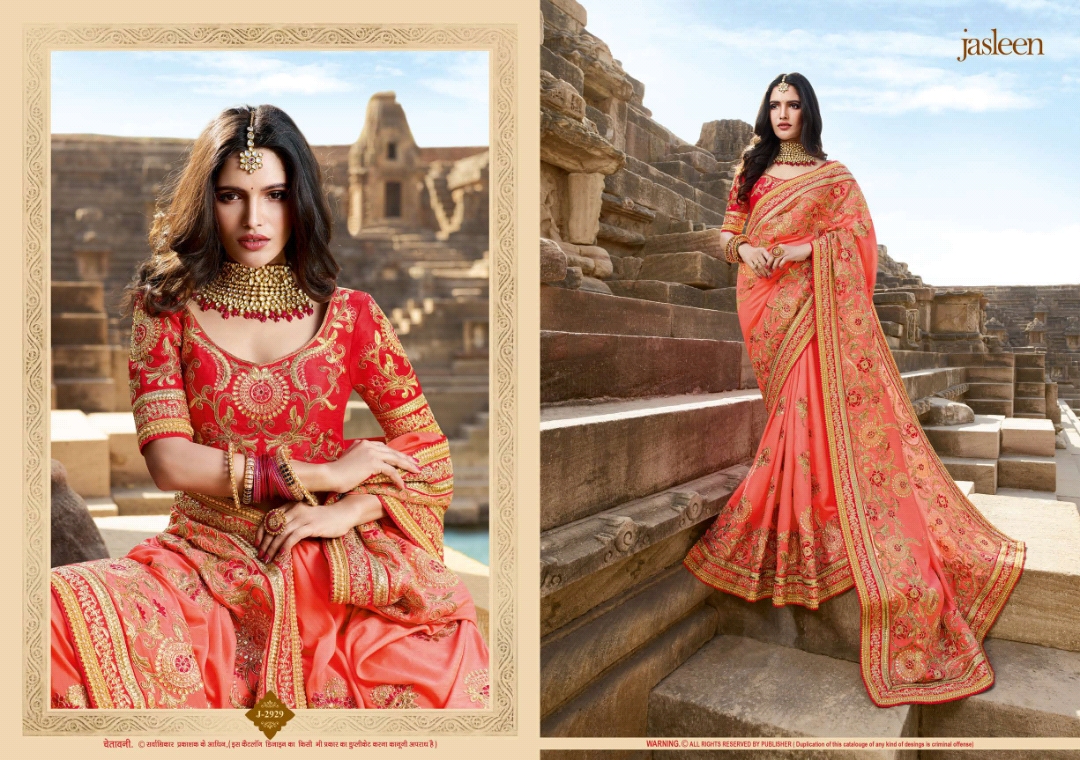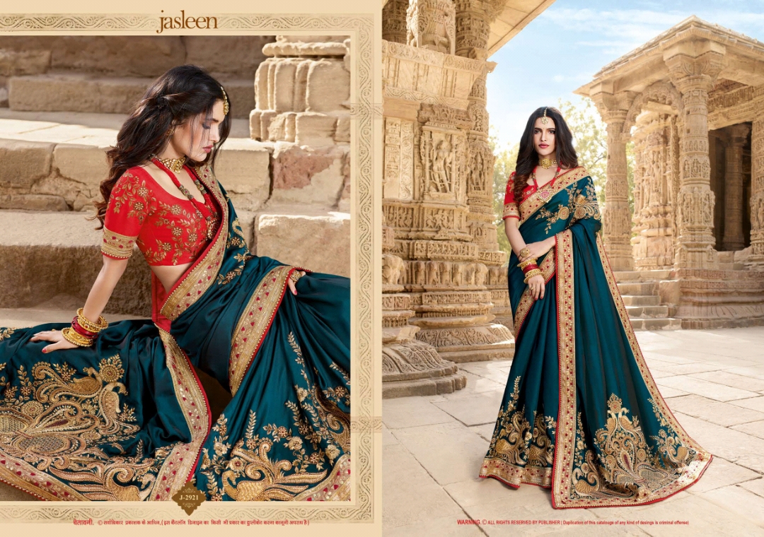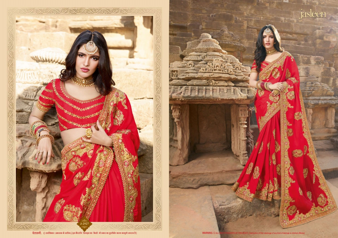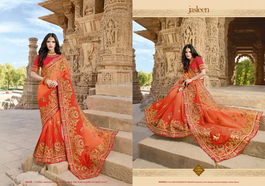 Buy Online Jasleen Kaashi Series J2921 To J2932 Fancy Designer Party Wear Sarees Wholesale Supplier Gujarat 12 Pcs of Full Catalogue at Wholesale Price. Looking for Jasleen Kaashi Series J2921 To J2932 Fancy Designer Party Wear Sarees Wholesale Supplier Gujarat Full Catalouge at Best Price? Buy Now Jasleen Kaashi Series J2921 To J2932 Fancy Designer Party Wear Sarees Wholesale Supplier Gujarat at Wholesale Rate of Rs 0 with Total 12 Pcs from authroized dealer and supplier of BRAND'S Brand. Cost of Each piece is just only Rs 0 which is very low and affordable price to resale the product in your retail store ,This is Surat based Wholesale Supplier & Dealer of BRAND'S Brand. Click on Brand name to Know more about BRAND'S Brand's products.Call or Whatsapp on 9898838984 for booking or enquiry